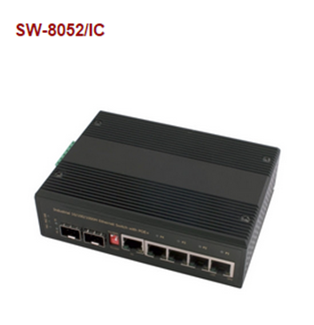 SW-8052/IC представляет собой промышленный неуправляемый коммутатор на 6 портов Gigabit Ethernet.4 порта Gigabit Ethernet соответствуют стандартам технологии передачи питания и данных по кабелю витой пары (PoE IEEE 802.3 af/at). Работает с блоками питания DC 12-55V широкого диапазона выходного напряжения. SW-8052/IC также оснащен SFP-слотом и комби-портом, который позволяет осуществлять подключение к оптическим и медным линиям связи.