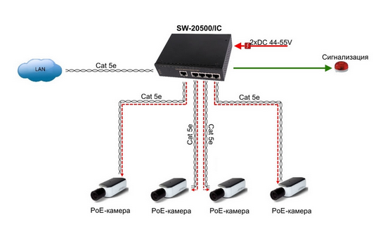 SW-20500/IC – коммутатор Fast Ethernet с 5 портами. Работает с блоками питания DC 9-56V широкого диапазона выходного напряжения. Эта модель оснащена 4 портами Fast Ethernet и Fast Ethernet Uplink-портом, который предназначен для подключения к медным линиям связи и проводам.
