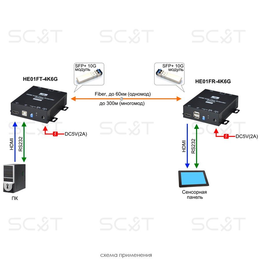 HE01F-4K6G-KS Комплект для передачи HDMI и сигналов USB/RS232/ИК управления по оптоволоконному кабелю
