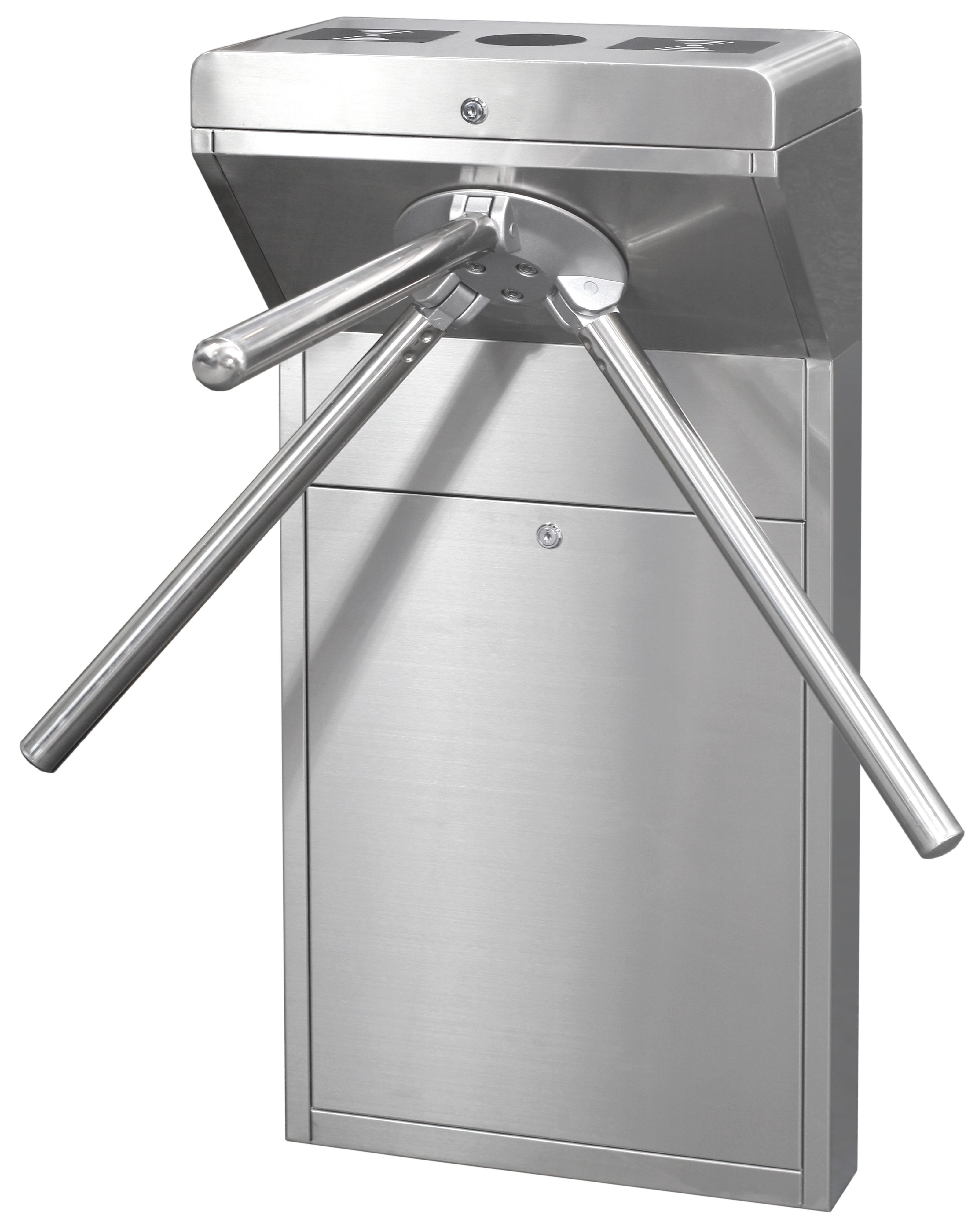 Тип трипод, к которому относится Smartec ST-TS010, представляет собой наиболее простую конструкцию турникета. Преградой являются штанги, установленные на специальном шарнире под углом 120 градусов друг к другу, длина каждой из которых составляет 500 мм. В исходном положении одна из штанг параллельна полу и преграждает проход, в то время как две другие находятся в нижнем положении. Человек, проходя через турникет Smartec, толкает штангу, в результате чего шарнир поворачивается, и планка оказывается за пределами прохода. Её место занимает другая, преграждая проход следующему человеку.