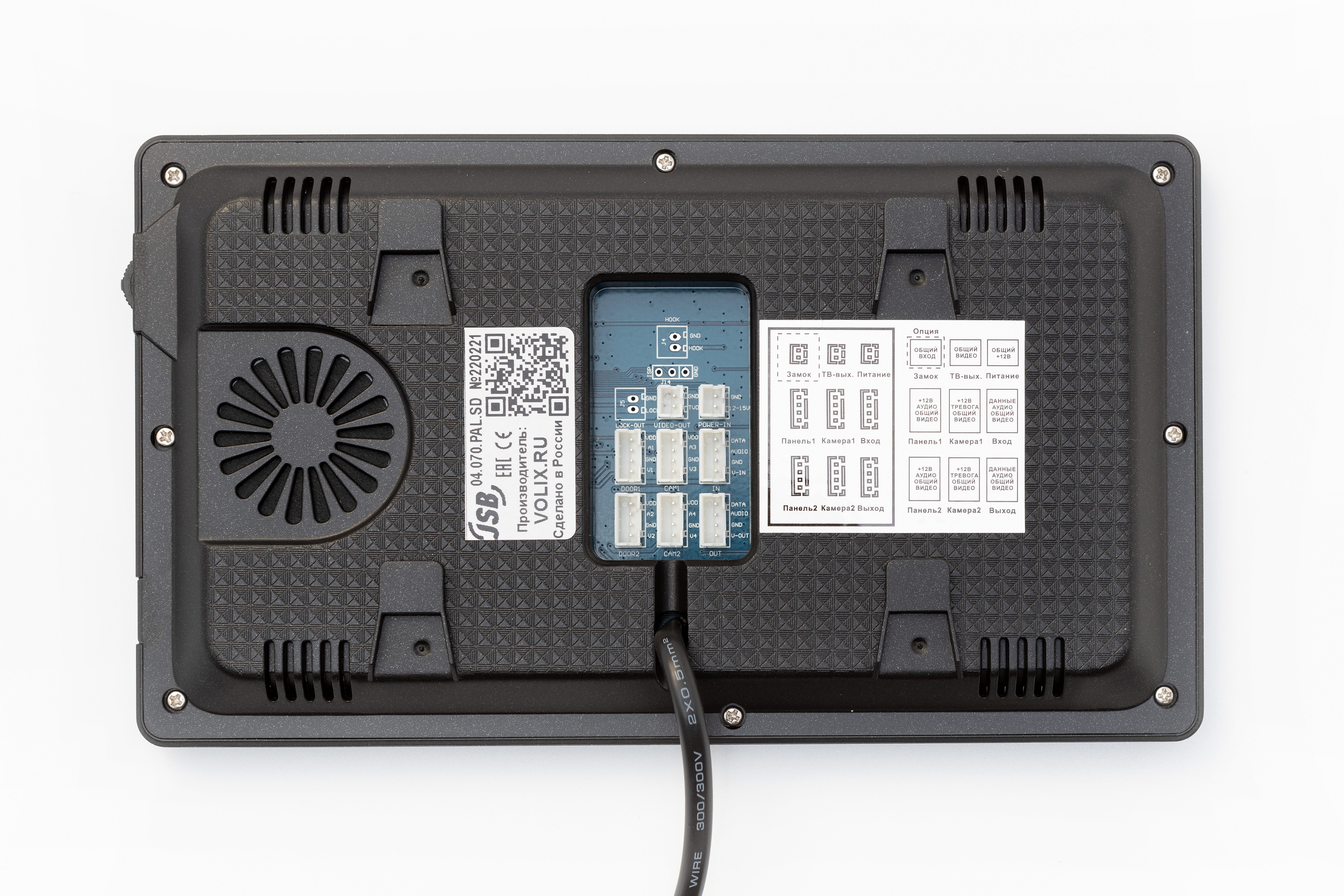 Монитор цветного видеодомофона 7" TFT LCD, PAL, разрешение 1024х600, hands-free. Максимальное подключение: до 2-х вызывных панелей, до 2-х видеокамер, интерком до 6-ти мониторов. Наличие слота для SD-карты 32 Гб класс 10 и выше. Механические кнопки управления. Запись голосового сообщения от посетителя. Пользовательские мелодии вызова. Детекторы движения для видеокамер и вызывных панелей. Входы тревожных датчиков для старта записи с видеокамер. Запись видео или фото по тревоге или вызову. Просмотр фото и воспроизведение видео с SD-карты. Фоторамка. Часы. Питание монитора 220В (встроенный блок питания) + возможность питания от 12V.