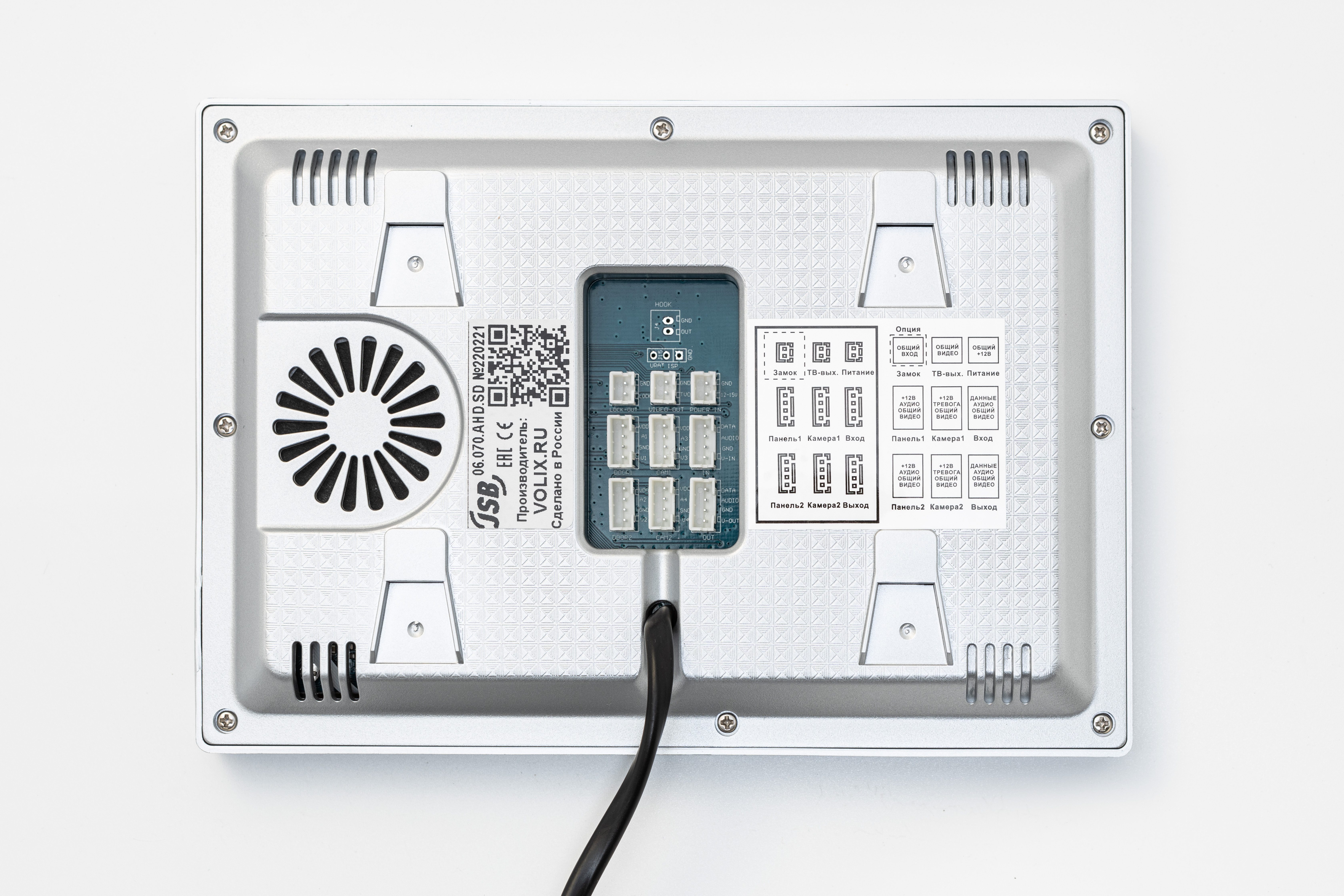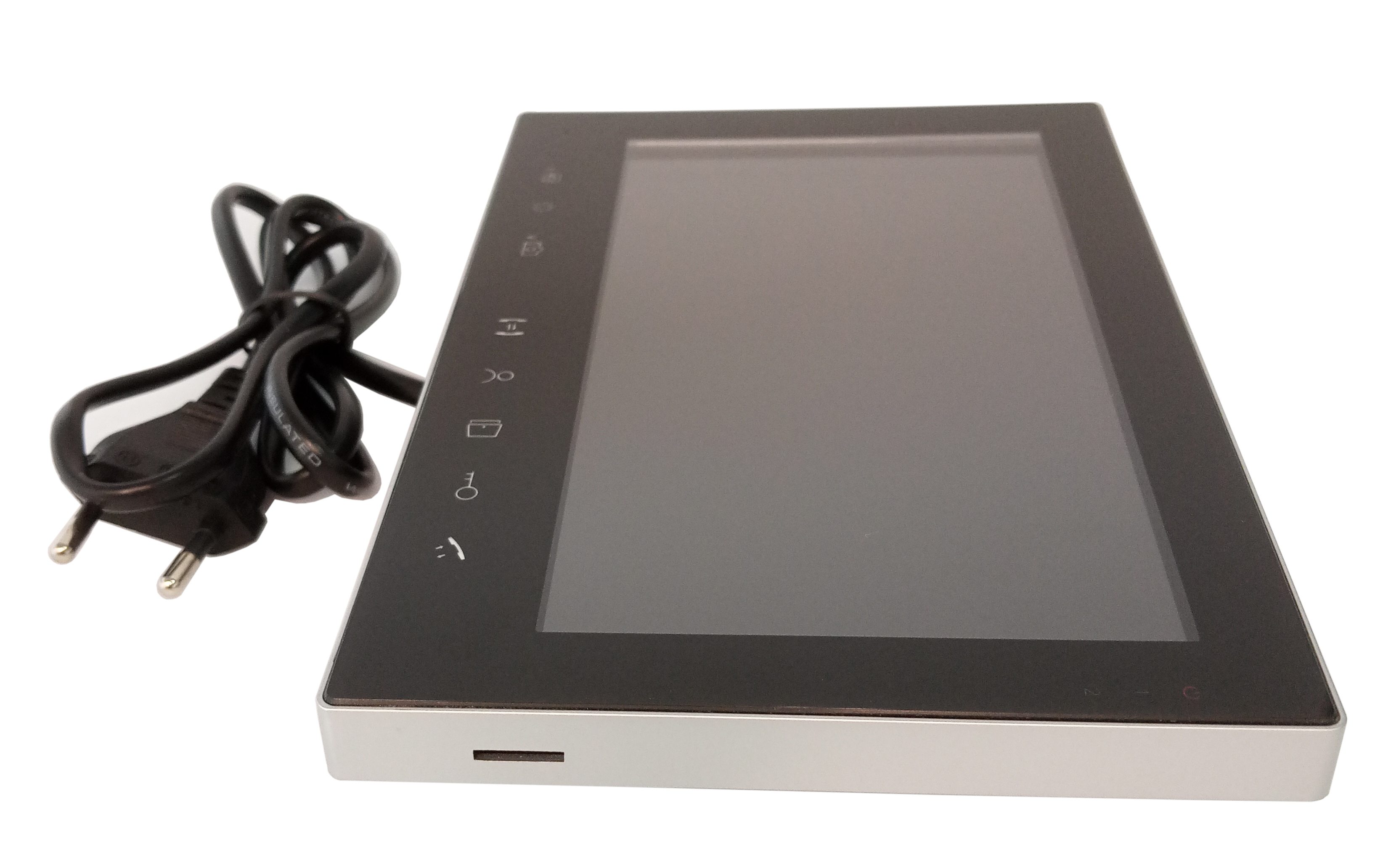 Монитор цветного видеодомофона 7" TFT LCD, AHD 1080p/720p/960p/CVBS/CVI/TVI, разрешение 1024х600, hands-free. Максимальное подключение: до 2-х вызывных панелей, до 2-х видеокамер, интерком до 4-х мониторов. Наличие слота для SD-карты 128 Гб класс 10 и выше. Сенсорные кнопки управления. Запись голосового сообщения от посетителя. Пользовательские мелодии вызова. Детекторы движения для видеокамер и вызывных панелей. Входы тревожных датчиков для старта записи с видеокамер. Запись видео или фото по тревоге или вызову. Просмотр фото и воспроизведение видео с SD-карты. Фоторамка. Часы.Питание монитора 220В (встроенный блок питания) + возможность питания от 12V.