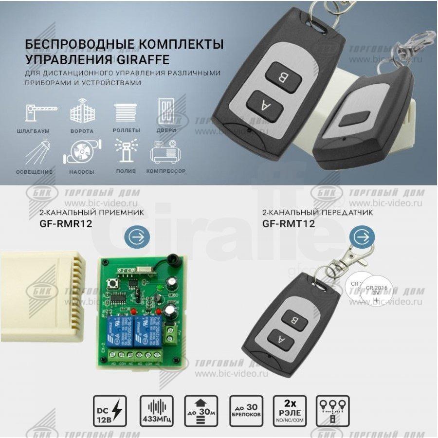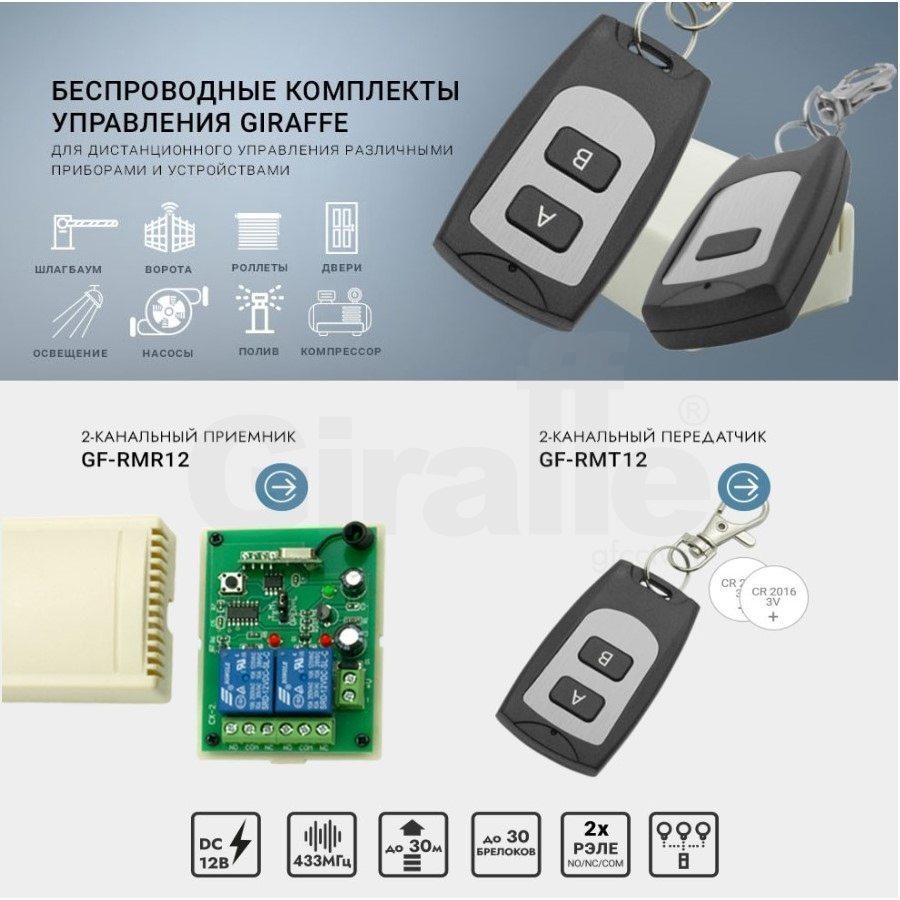 2-канальный приемник GF-RMR12 предназначен для дистанционного управления по радиоканалу различными приборами и устройствами. Например, замками, воротами, шлагбаумом, сигнализацией, жалюзи, освещением, и т.п.
