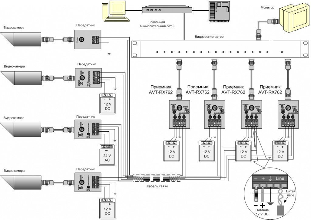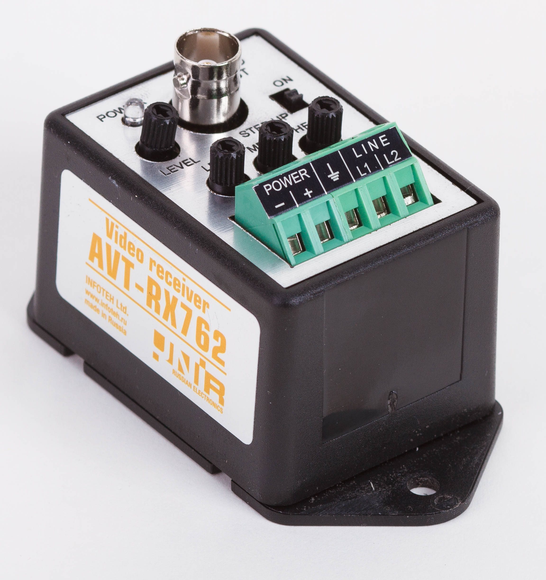 Активный одноканальный приемник 960H AVT-RX762 по витой паре предназначен для преобразования принятого сигнала и последующего формирования видеосигнала и передачи на расстояние до 2000 м с разрешением 960H. Защита по линии и по питанию от перенапряжения и переполюсовки, грозозащита.