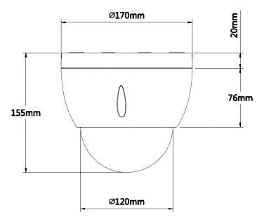 Габаритные размеры устройства Ø170 x 155 мм. Диапазон рабочих температур от -40° до +60° С. Питание 24 В, поддержка PoE.