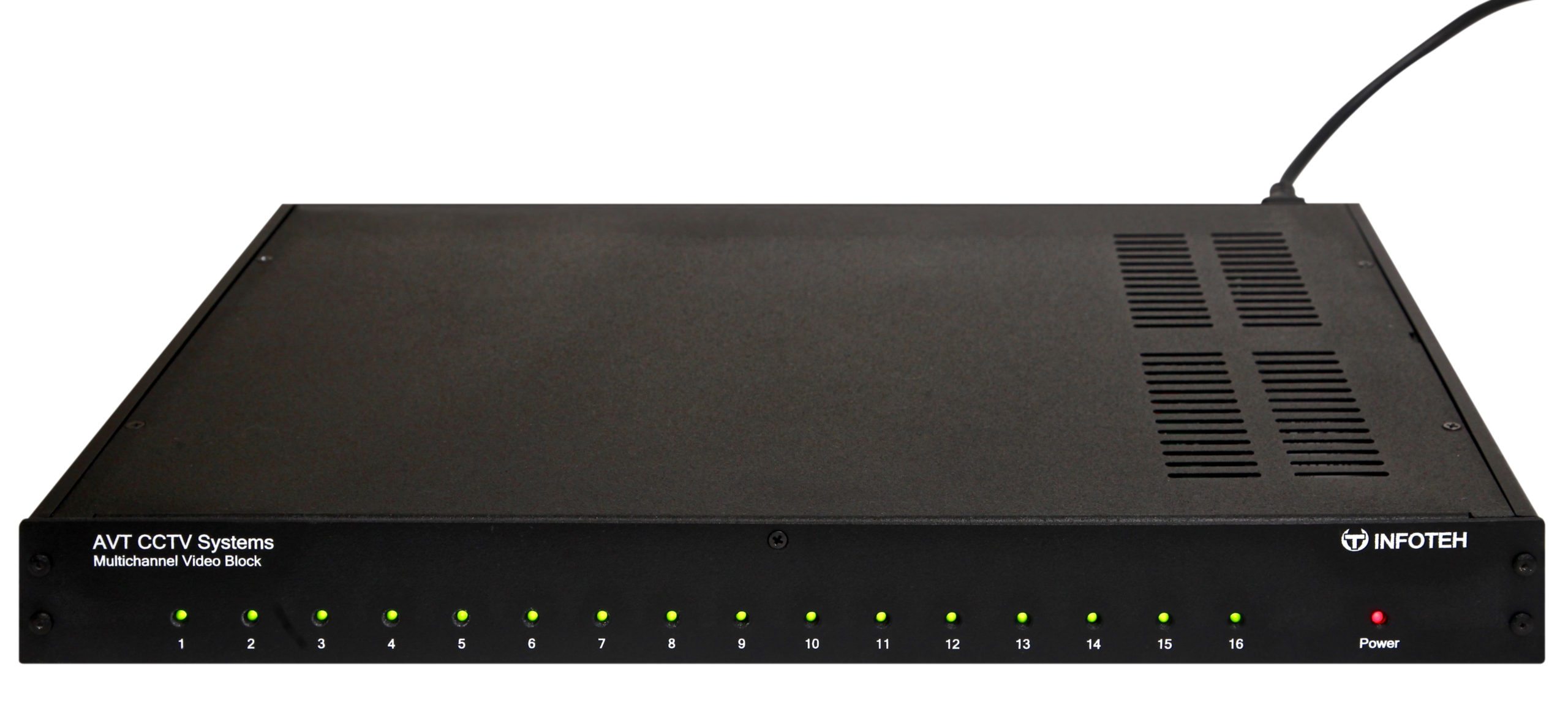 Активный 16-ти канальный универсальный блок приема 5Mp/4Mp/1080p/720p AHD/CVI/TVI видеосигналов до 1000 метров для работы с кабелем «витая пара». Установка в 19″ стойку (высота 1U). Дальность передачи AHD/CVI/TVI: 720p — до 1000 метров, 5Mp/4Mp/1080p AHD — до 800 метров, 5Mp/4Mp/1080p TVI/CVI — до 600 метров. Модульная конструкция. Возможность «горячей замены». Вход линий — под клеммы, выход видео — 16 BNC. Напряжение питания (140 … 250) V АС.
