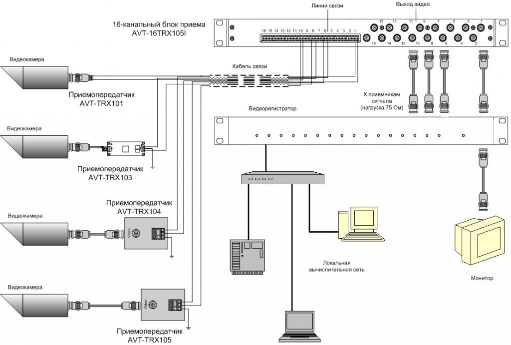 AVT-16TRX105I Пассивный 16-канальный блок приемопередачи