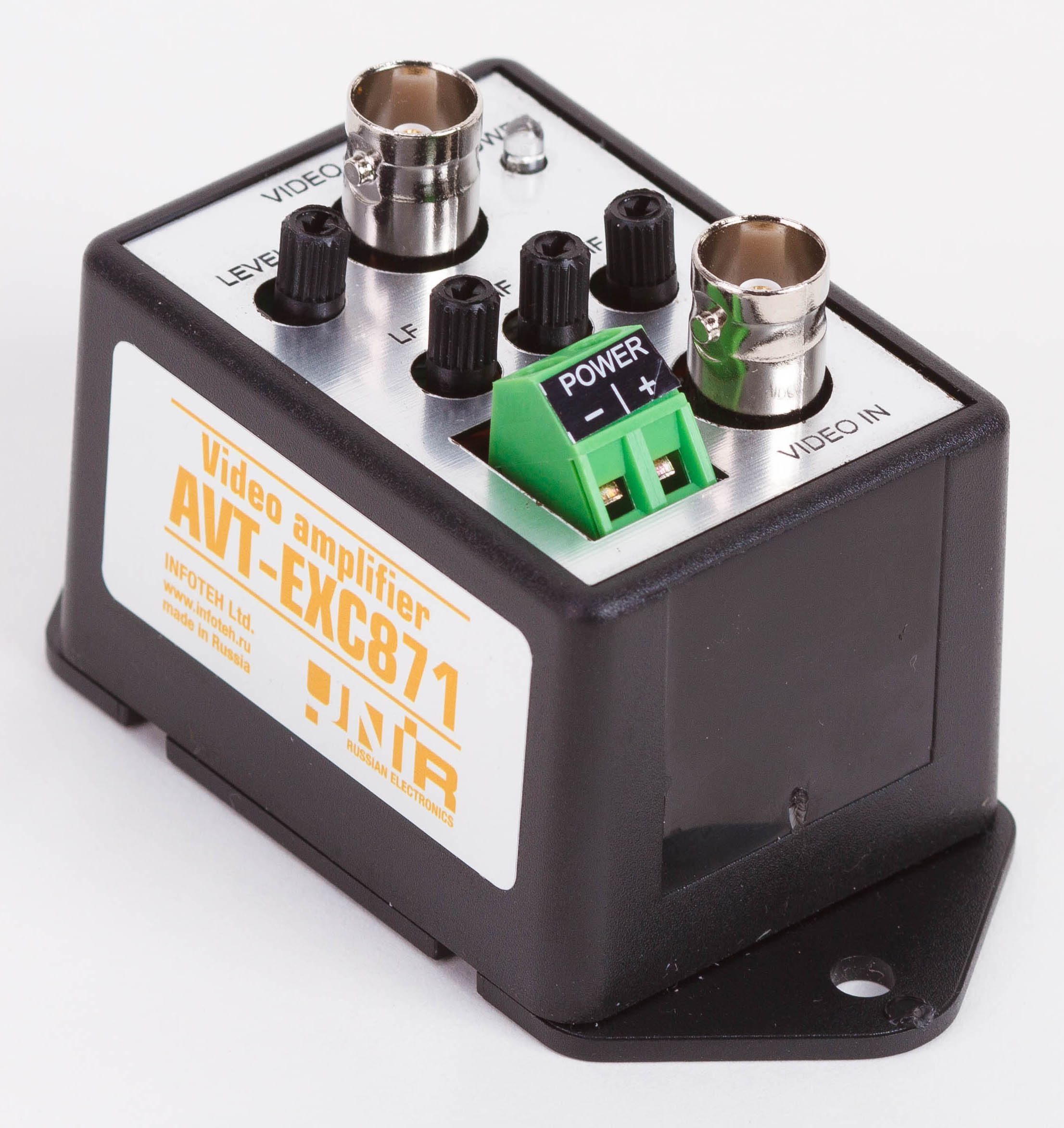 AVT-EXC871 Активный одноканальный видеоусилитель-корректор с гальванической развязкой служит для передачи видеосигнала с дальностью до 2000 метров. Регулировка до 4 параметров: четкость, резкость, контрастность, яркость. Защита от высокого напряжения, защита от разряда электричества по входу и выходу видео, защита от гроз и переполюсовки.