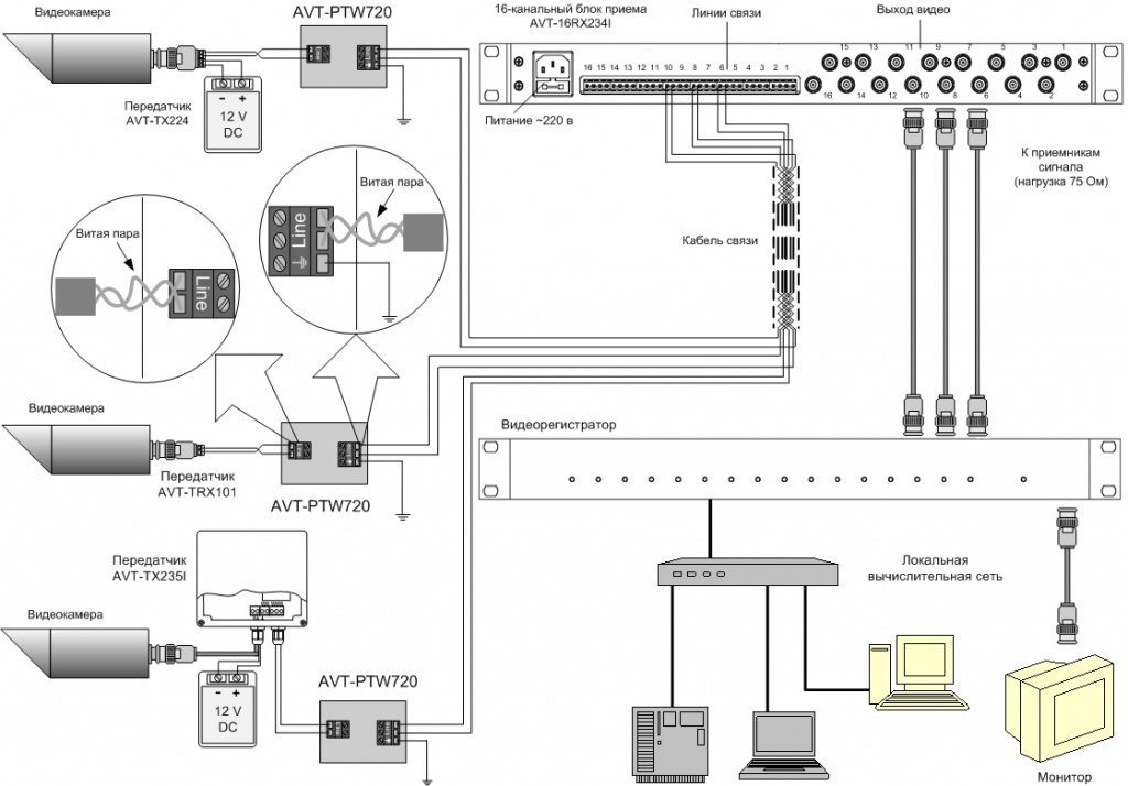 Устройство грозозащиты AVT-PTW720 с изолирующим трансформатором предназначен для защиты аналоговых камер любого разрешения по кабелю "витая пара". Защищает от повреждений высоким напряжением (от импульсных наводок, грозы), от скачков напряжения, от токовой "земляной петли". На входе и выходе разъем BNC.