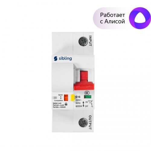 Умный автомат Sibling на 20 ампер устанавливается в электрощиток вместо обычного автомата. Включает/отключает линию 220В по команде из приложения, по расписанию, по сигналу определенных датчиков или в зависимости от погодных условий.