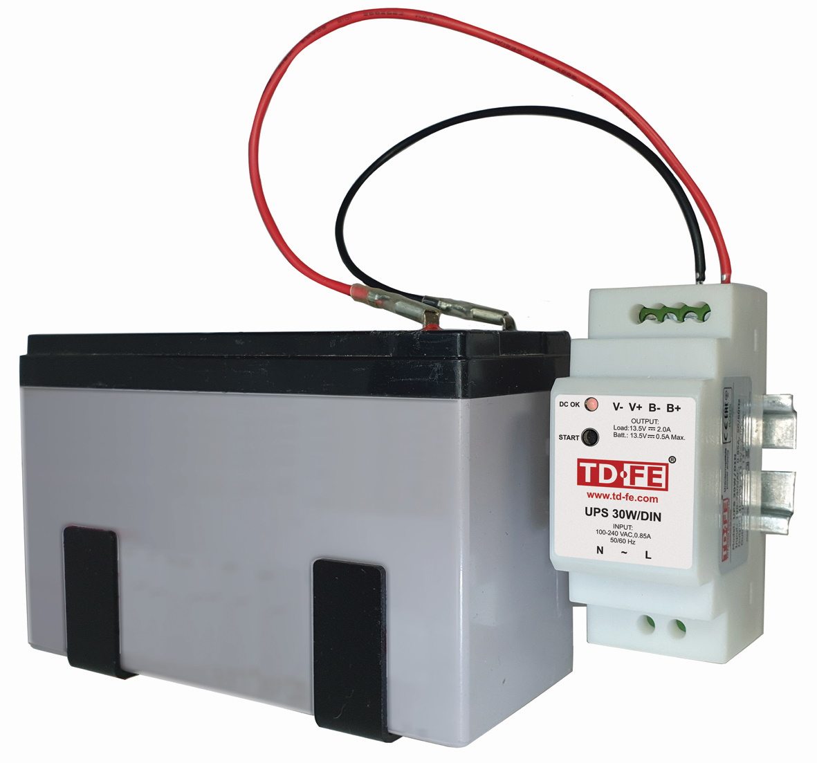Блок бесперебойного питания UPS 30W/DIN служит для питания постоянным напряжением устройств и приборов охранно-пожарной сигнализации, систем видеонаблюдения, датчиков, электромеханических замков с напряжением питания 14 В. Выходной ток 2 А. Встроенная защита от короткого замыкания, перегрузки, переполюсовки на АКБ и глубокого разряда АКБ.. Светодиодная индикация работы на корпусе. Подключение аккумулятора к нагрузке без сети 220 В. Запуск блока питания без подключенной АКБ. Горячая замена АКБ. Отсутствие провалов питания при переключении. Возможность крепления на DIN рейку. Миниатюрный корпус.