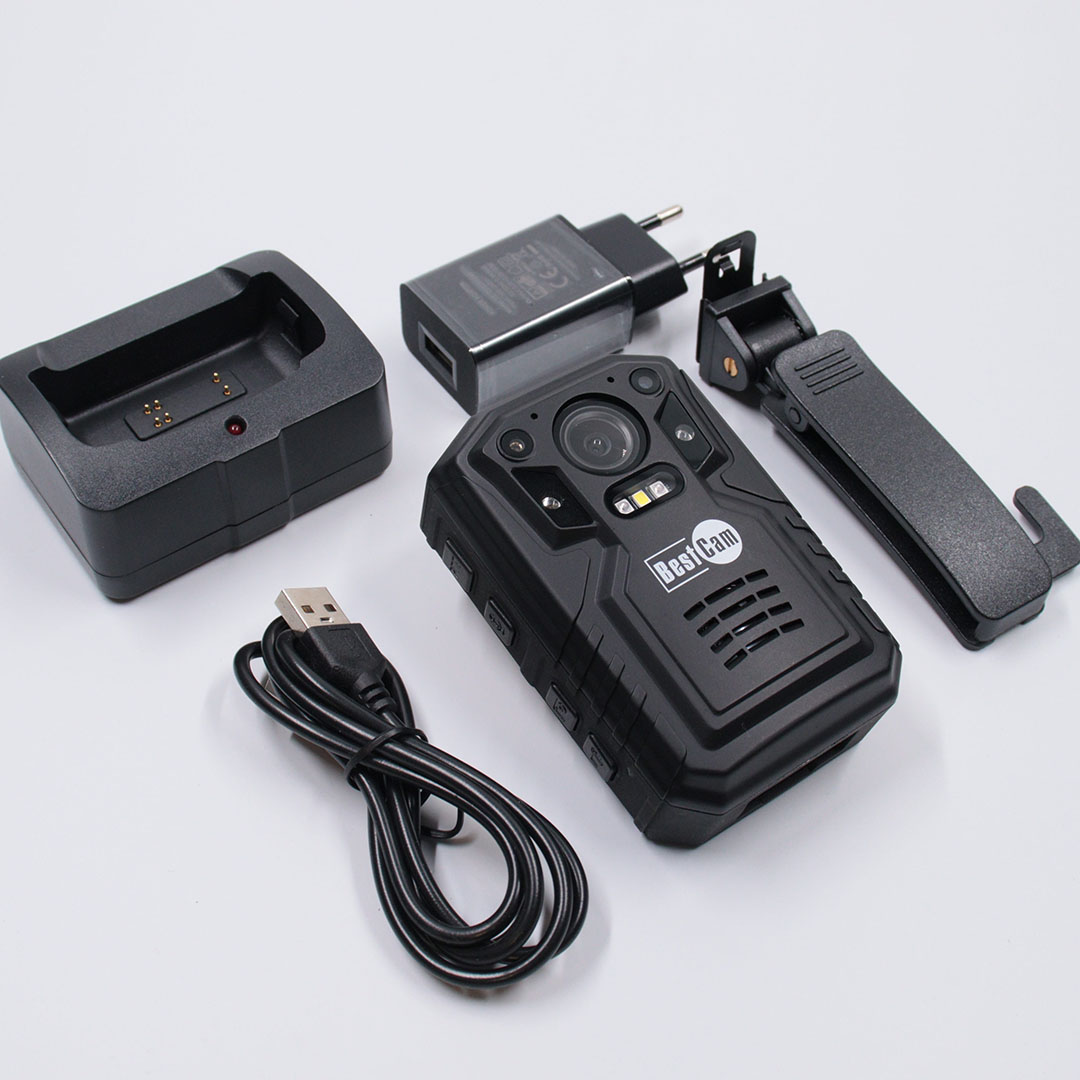 Экран 2.0 дюйма HD. Объектив 2.8 мм, F2.0 апертура, 140 ° угол обзора. Матрица Sony IMX323. Видео 1080p@30fps ,H.264, MP4, AES256 шифрование. Фото 32 МП, JPG формат. Аудио - AAC. Поддержка двусторонней голосовой внутренней связи и кластерной внутренней связи PTT. Есть 4G, Wi-Fi, GPS связь. Встроенный микрофон. Память встроенная до 128 Гб. ИК подсветка. Фонарик. Лазерная подсветка. Батарея 5000 мАч, 18 часов автономной работы в режиме реального времени. Зарядка - док станция/USB зарядка, ≤4 часов. Размер 96*62*34 мм. Вес 207 г.