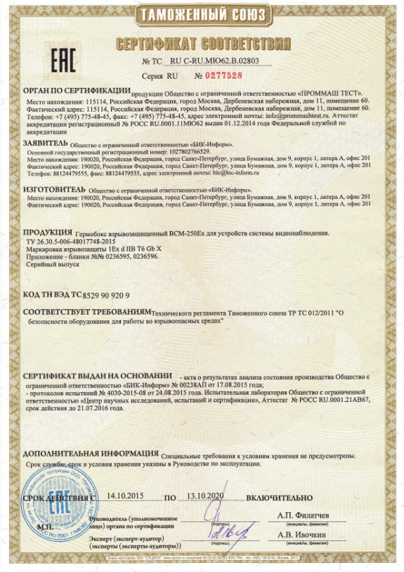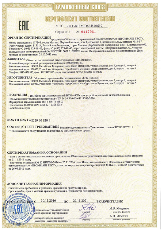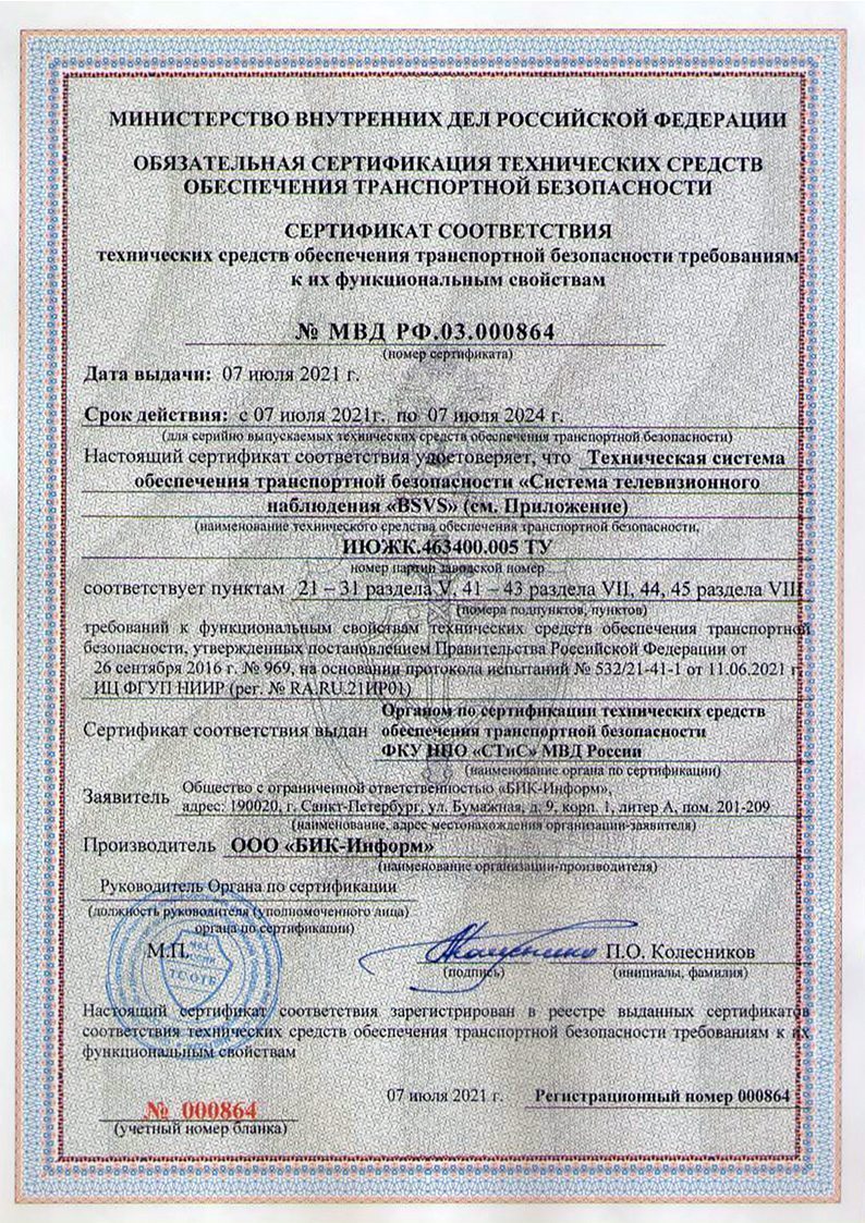 В камере BHZ реализованы следующие функции: