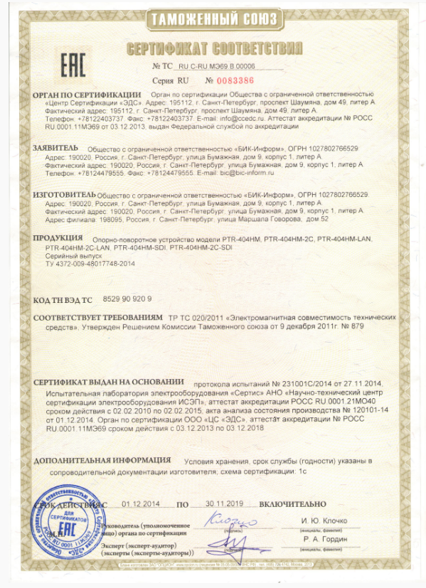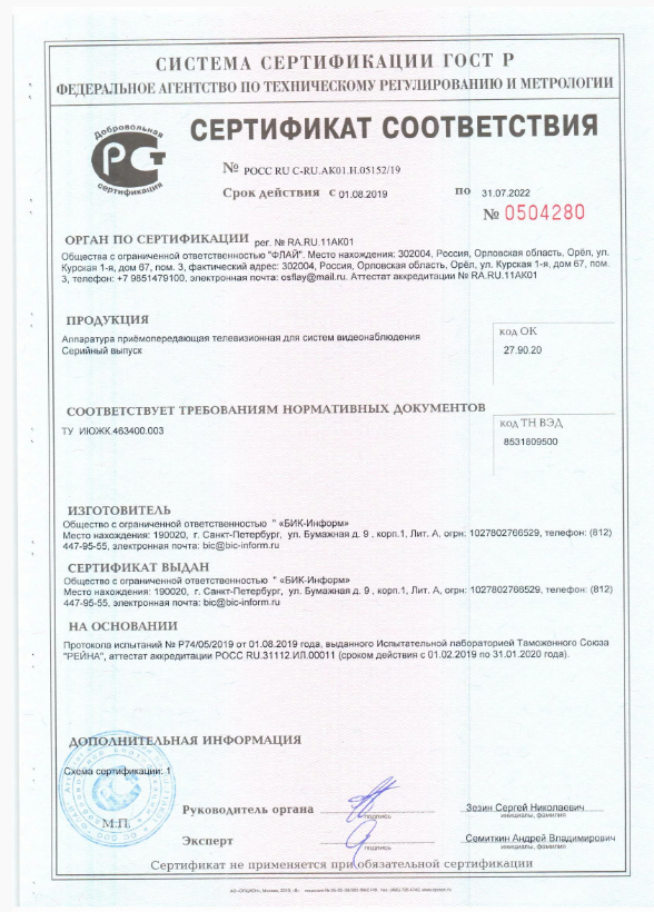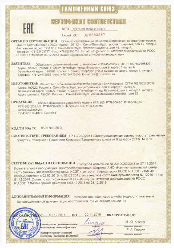 Передача цифрового видео осуществляется посредством интерфейса сети Ethernet. В процессе работы изделия используются три вида управления: а) по сети Ethernet, в соответствии с конфигурацией сети видеонаблюдения потребителя; б) последовательный порт RS-485, протоколы Pelco-D, Pelco-DE в) аналоговая клавиатура.