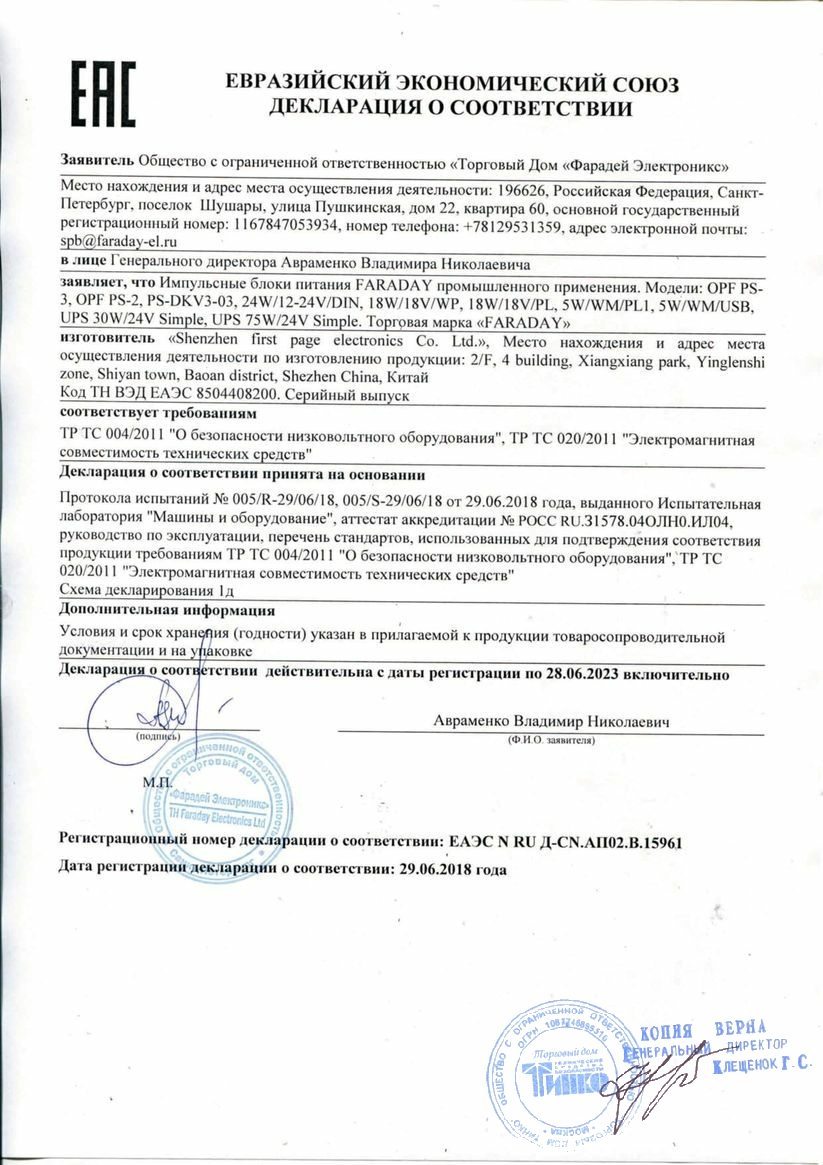 Блок питания БПД 18W/18V/WP