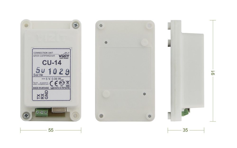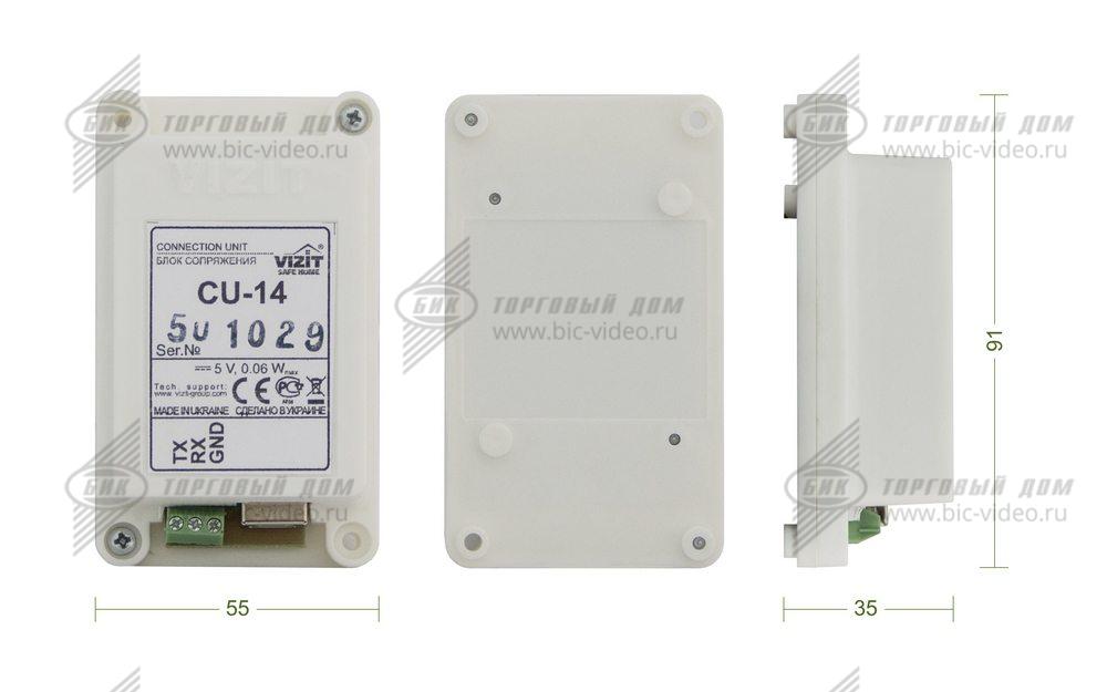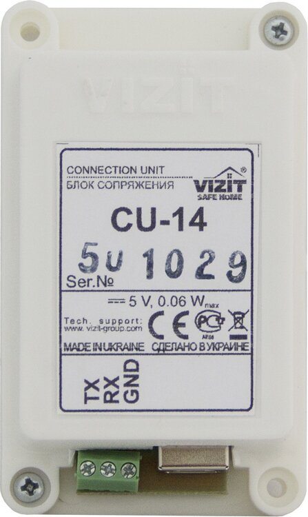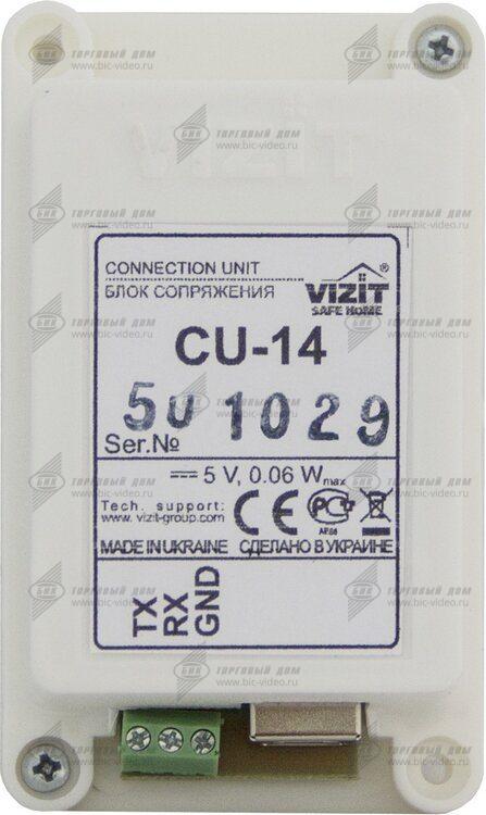 Блок сопряжения CU-14 предназначен для обновления программного обеспечения устройств VIZIT, имеющих данную функцию.