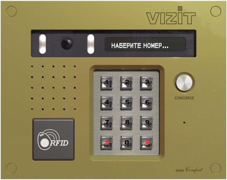 отпирание замка калитки радиочастотными идентификаторами (VIZIT-RF3.x и VIZIT-RF4.x / 13.56 МГц), абонентом во время разговора, индивидуальным или общим кодом, нажатием кнопки для выхода;
