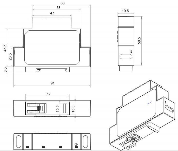 Габаритные размеры устройства 91 х 63 х 19.5 мм. Диапазон рабочих температур от -25° до +60° С.