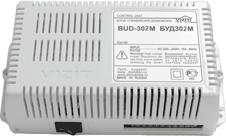 - блок управления домофона БУД-302M работает в комплекте c БВД-311x, БВД-312R, БВД-313x, БВД-321x, БВД-341, БВД-342x, БВД-343х как составная часть домофона, видеодомофона VIZIT;