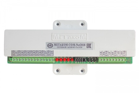 Коммутатор сетевой МЕТАКОМ COM-Net2018 версия2 (далее сетевой коммутатор) предназначены для коммутации абонентских линий в домофонных системах на базе блока вызова МЕТАКОМ МК2018 для организации системы «калитка-подъезд» и рассчитаны на подключение к координатным коммутаторам МЕТАКОМ COM-100UN, COM-25UN или аналогичного. МЕТАКОМ COM-Net2018 версия2 позволяет подключить до 4 сетевых блоков вызова МК2018 (или других совместимых производства МЕТАКОМ).