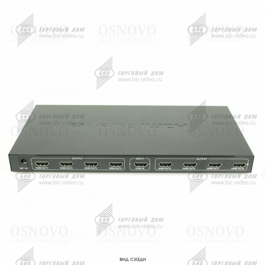 Разветвитель сигнала HDMI (1вх./8вых.). Максимальное разрешение 4K2K(30Гц). Поддержка 3D и HDCP. Скорость передачи данных до 10,2Гбит/с.Вх.- HDMI(A)/Роз.2,1х5мм(DC5V). Вых.- HDMI(A)x8. В комплекте БП DC5V(2А).