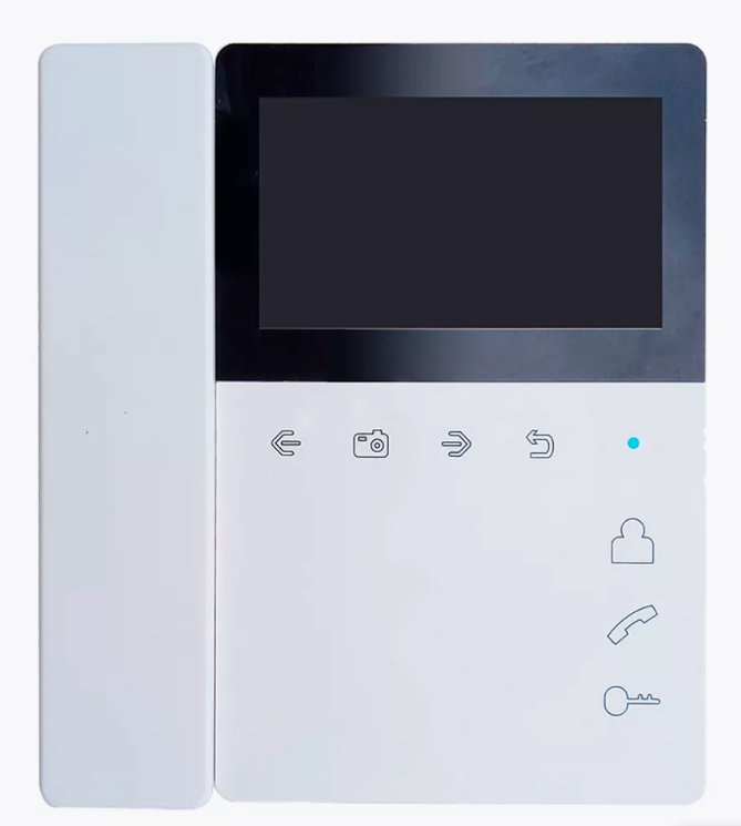 Монитор домофона с экраном 4,3 дюйма со встроенным блоком питания. Удобная в применении трубка на магните. Всё управление осуществляется сенсорными кнопками.