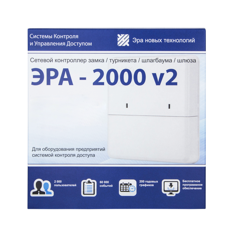 Сетевой контроллер Эра-2000V2 со встроенным считывателем Wiegand-26 (поддерживает до 2 считывателей) или Touch Memory (до 4 считывателей) предназначен для установки в небольших офисах и на объектах с численностью до 2000 человек. Эра-2000V2 может обслуживать до 2000 пользователей и имеет память на 60000 событий. При вскрытии корпуса срабатывает датчик. Запрет повторного прохода. Позволяет управлять электромеханическим и электромагнитным замком, турникетом. Материал корпуса - пластик. 2 кнопки для открытия замка.