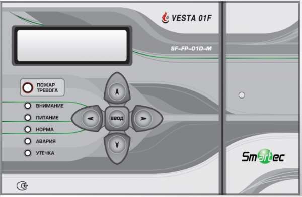 Устройство имеет одну адресно-кольцевую линии связи по 255 адресных устройств (длиной до 1000 м) с контролем на обрыв, КЗ и утечки на «землю». Также он имеет одну кольцевую линию связи RS-485 для подключения к другим центральным блокам Vesta 01F. Возможность постановка и снятие с охраны при помощью ключей Touch Memory ( до 256 ключей ). Основное и резервное питание 12-24В.