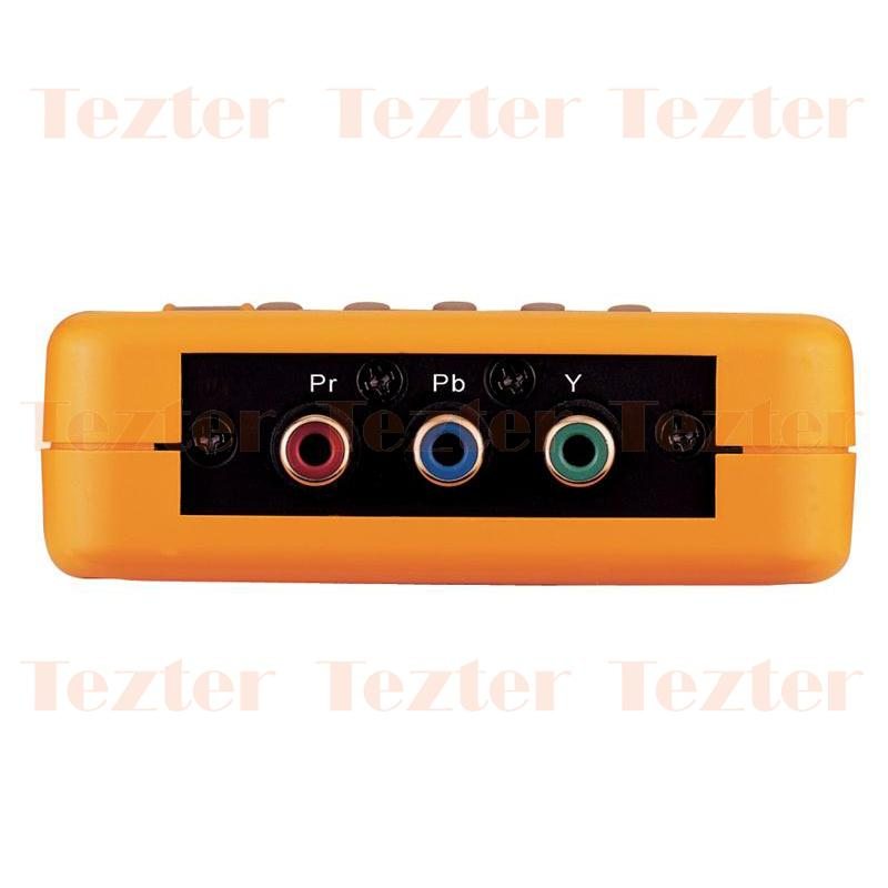 Устройство имеет LCD дисплей (2 строки по 16 символов). Максимальное разрешение 1920x1080. Отображение до 34 тестовых изображений в 20 различных разрешениях. Длина кабеля до 5 м. Выходной разъем YPbPr. Работа до 8 часов от аккумулятора.