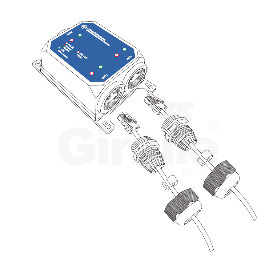 Уличный двух-портовый PoE удлинитель GF-AC102WP предназначен для увеличения расстояния передачи видеосигнала и питания PoE по сети 10/100М Ethernet по кабелю витой пары.