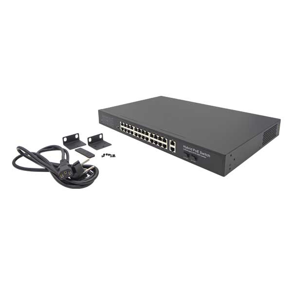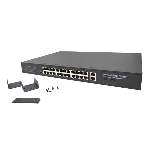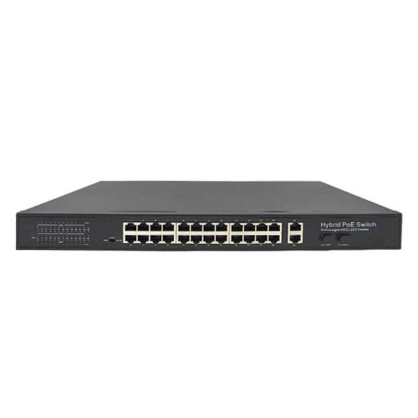Сетевой коммутатор GF-AC2422PoE служит для передачи данных и питания. Устройство имеет 26 портов. Из них: 24 порта с поддержкой PoE- 10/100Мб/с., combo: 2 порта UPLINK - 10/100/1000Мб/с и 2 порта SPF - 1000Мб/с. Устройство поддерживает такие протоколы и стандарты IEEE802.3af/at//PoE++; HiPoE. На каждый PoE канал приходится до 30 Вт. Общая мощность до 400 Вт. Функция автоматической перезагрузки устройств. Режим VLAN - изоляции РоЕ портов. Режим SUPM - увеличение расстояния передачи до 250м. Встроенный блок питания AC 100-240V.