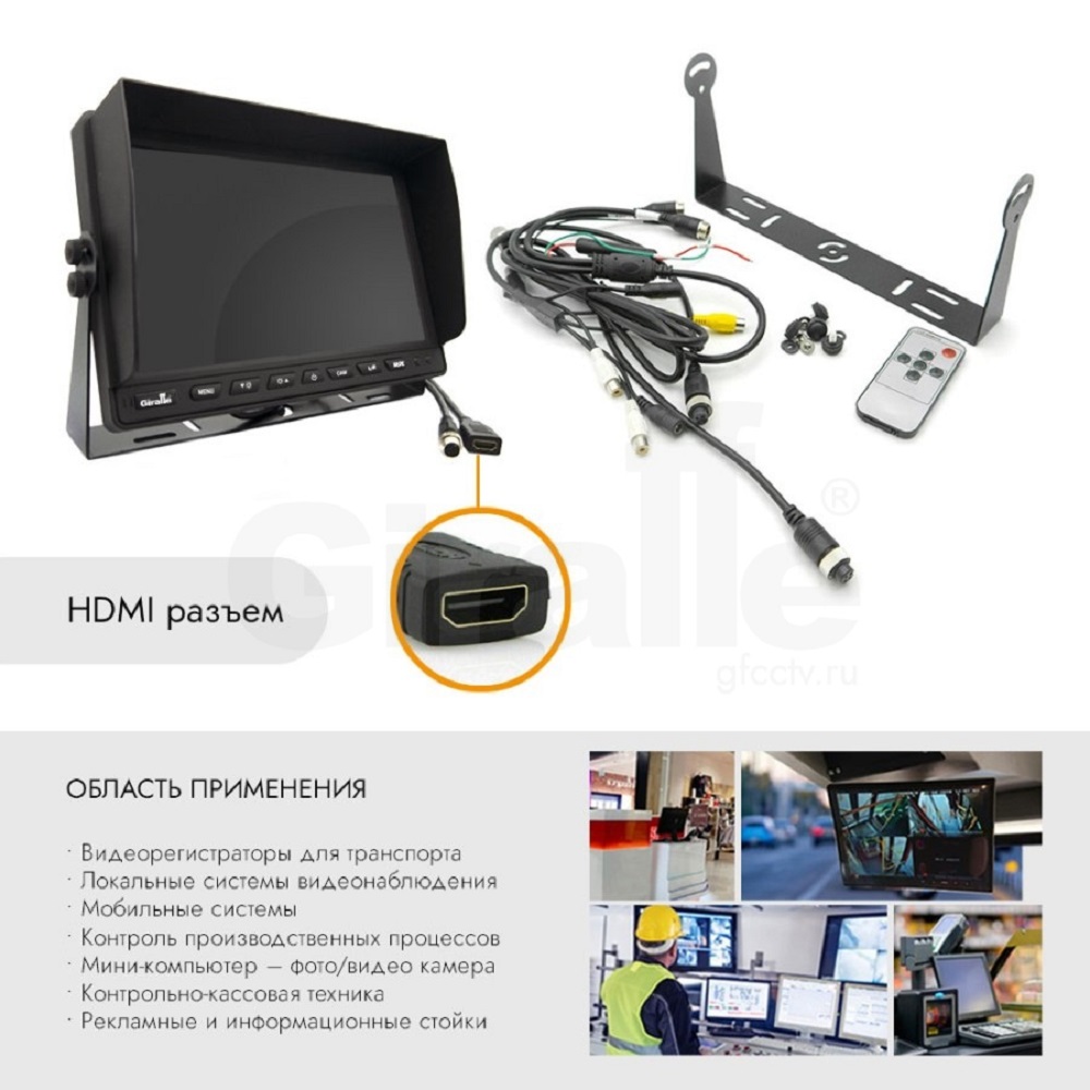 Монитор трехканальный GF-АМ101 с интерфейсом HDMI предназначен для отображения на экране телевизионного изображения, поступающего на его входы от различных источников (видеокамеры, видеорегистраторы, и т.п.).