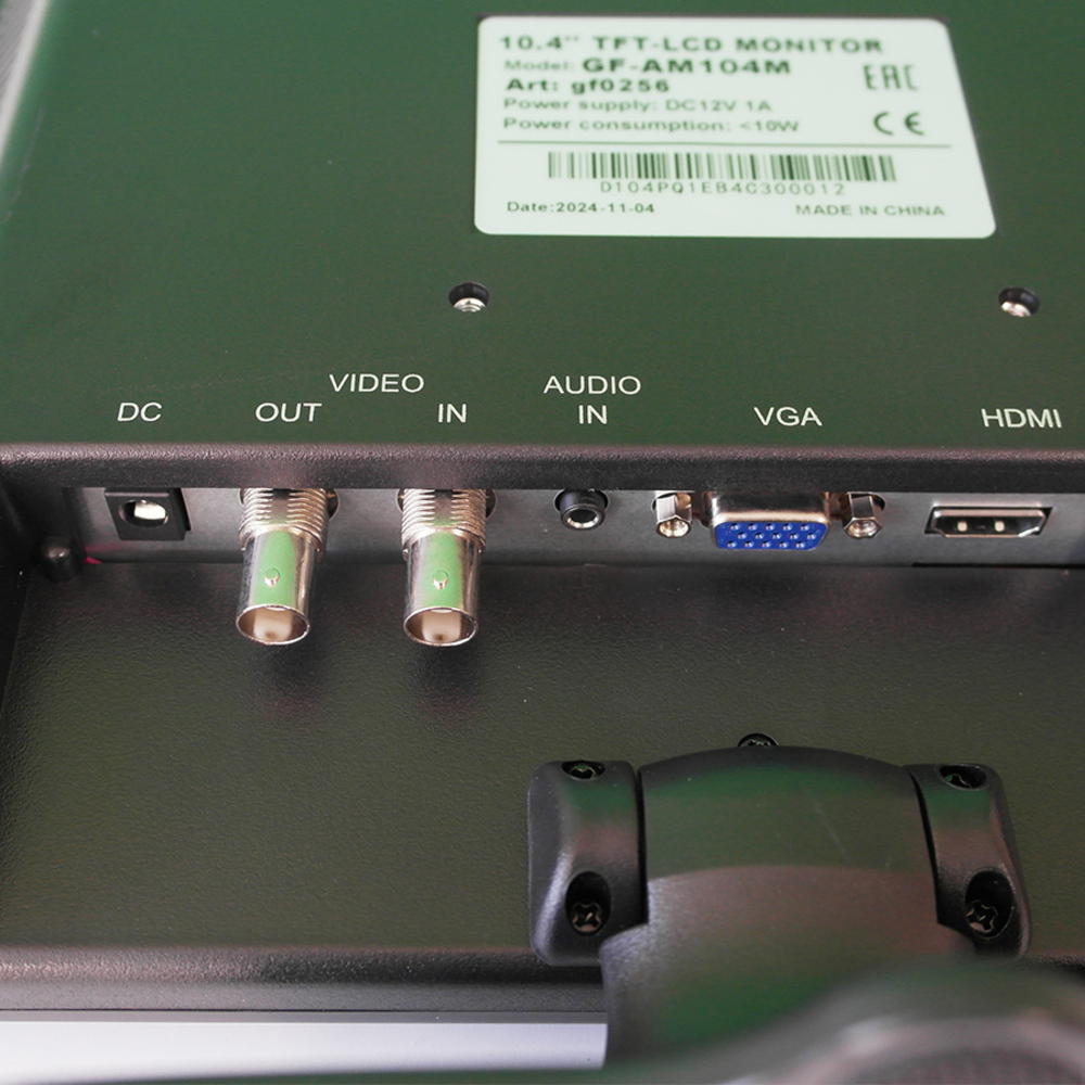 LCD монитор GF-AM104M с LED подсветкой. 10.4 дюйма (4:3). Разрешение 800 x 600. OSD-меню. Входы BNC, HDMI, VGA, Audio In. Выход BNC Поддержка телевизионного стандарта PAL/NTSC. Встроенные динамики.