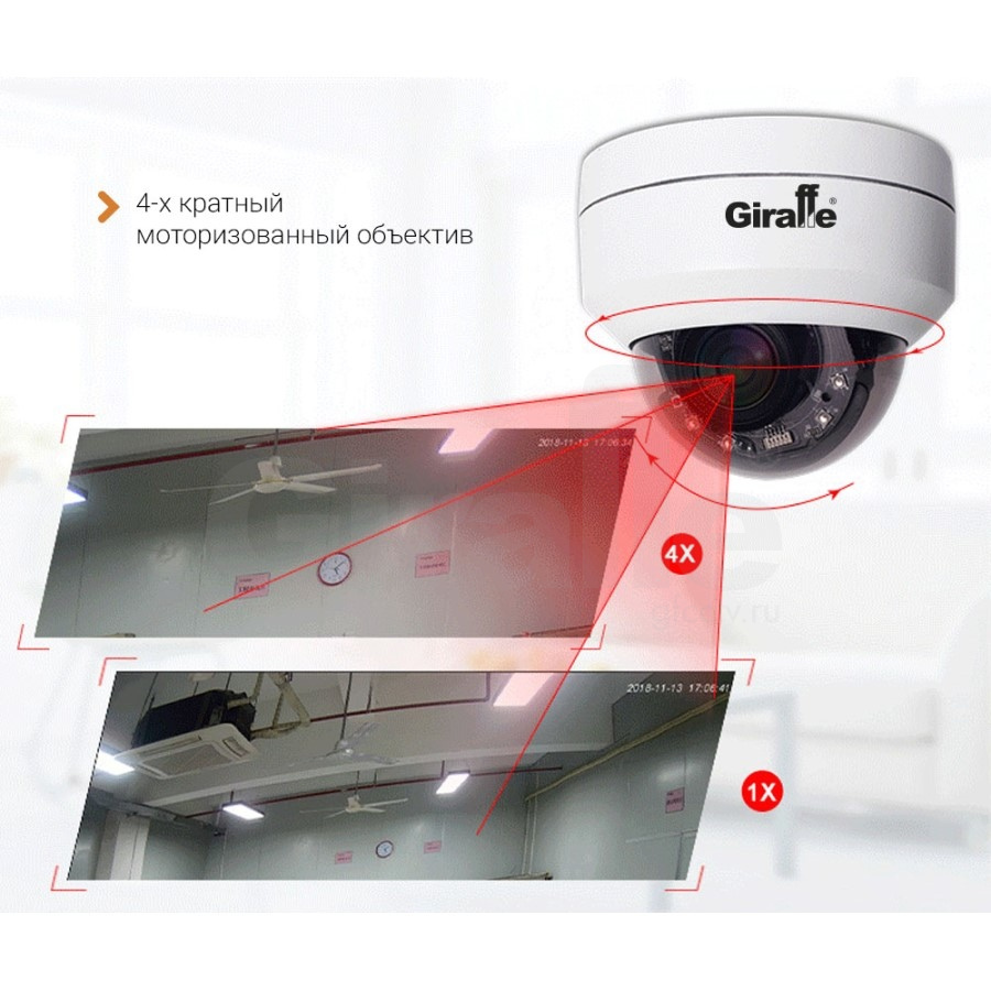 Видеокамера оснащена моторизованным объективом с 4-кратным увеличением и фокусным расстоянием 2.8-12 мм.