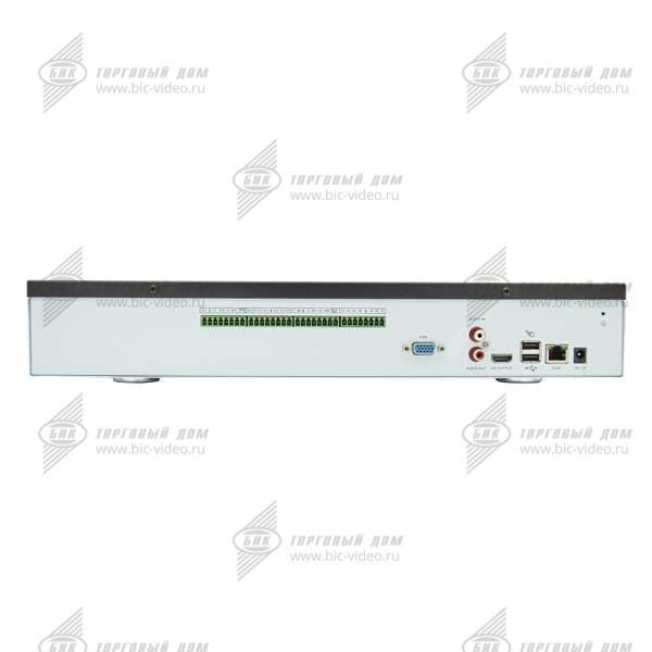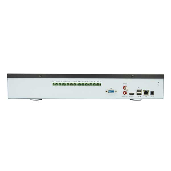 Устройство имеет 2 видеовыхода: HDMI (до 4К) и VGA (до 1080р), аудиовход 1 х RCA, аудиовыход 1 х RCA. Алгоритм сжатия H.264. Поддержка до 8 каналов при записи с IP камер с разрешением 8 Мп 3840x2160, до 32 каналов при записи с разрешением 5 Мп 2560x1920, до 32 каналов с разрешением 1080p. Регистратор имеет 2хUSB2.0 и 1хUSB3.0. Операционная система видеорегистратора - Embedded Linux.. Сетевой интерфейс RJ-45 (internet, LAN). Поддержка функции - детектор движения.