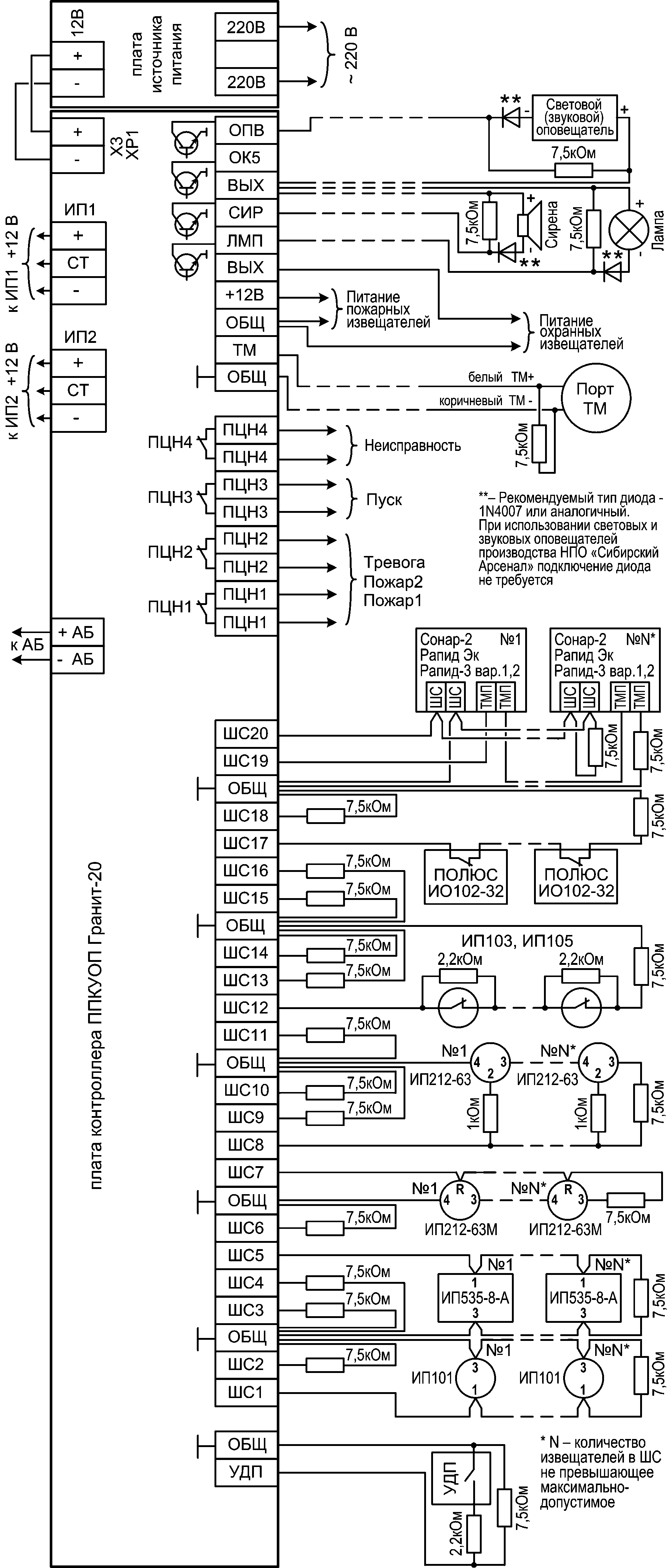 Гранит-20 Прибор приемно-контрольный и управления охранно-пожарный