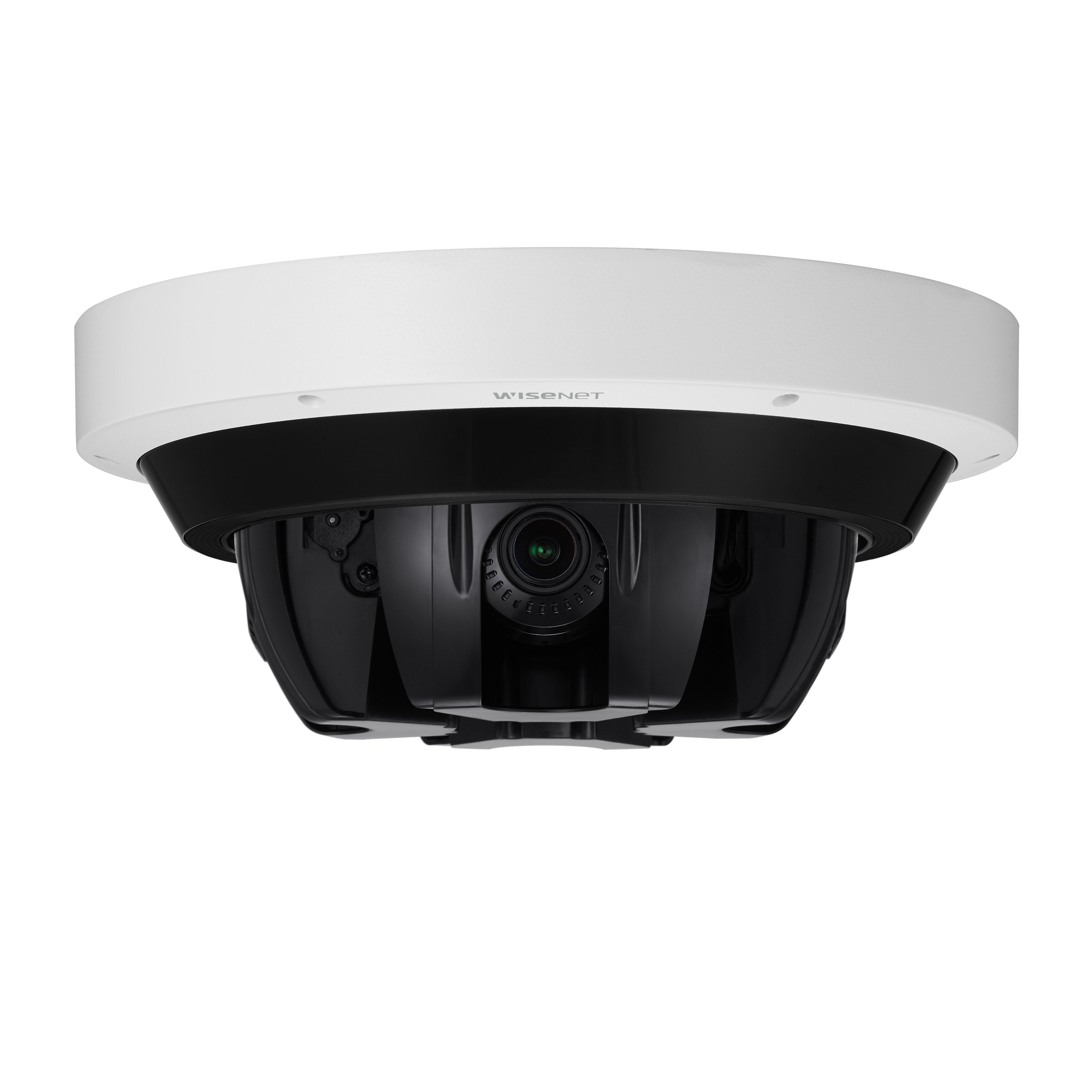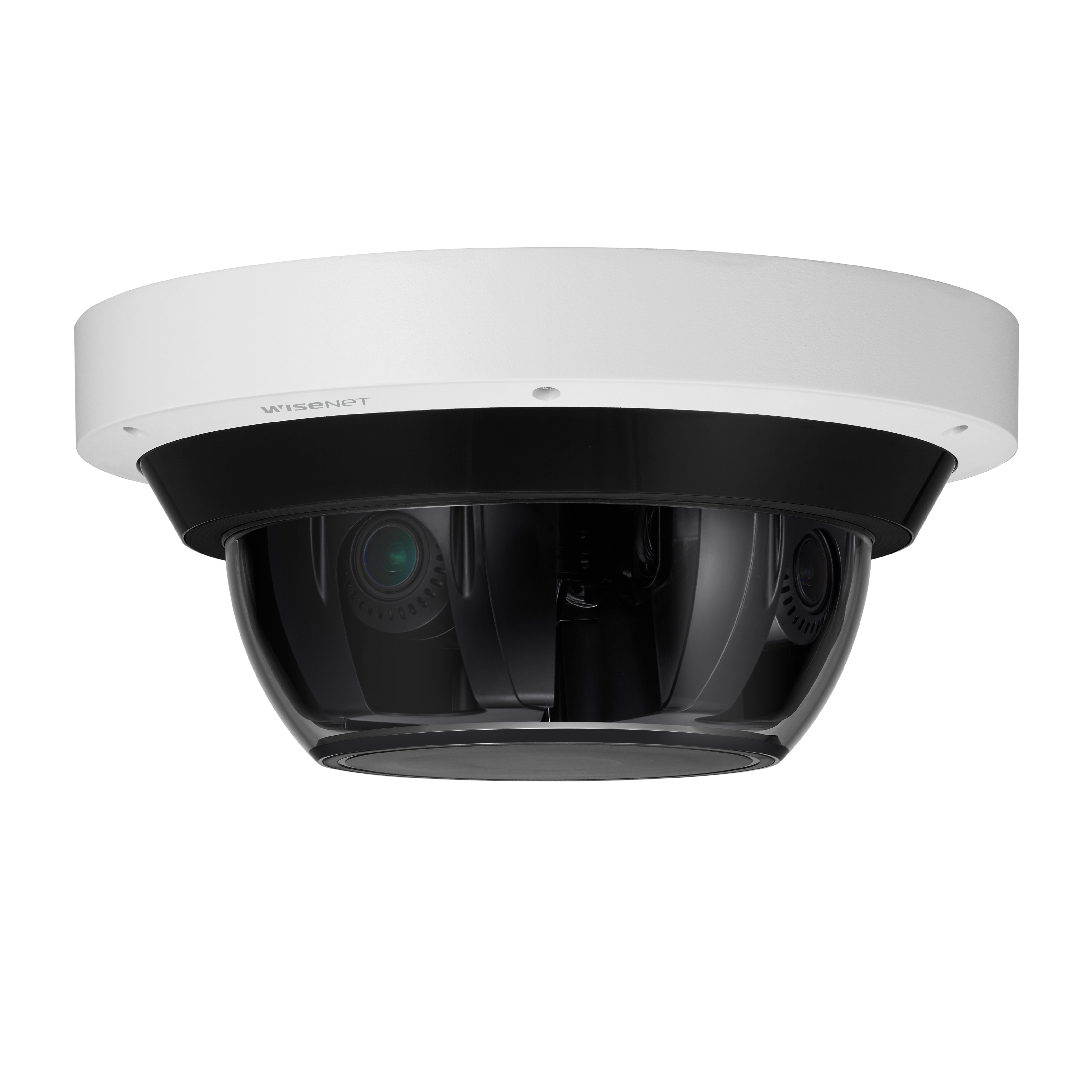 IP-камера мультисенсорная панорамная 360° уличная антивандальная купольная 8Мпикс., день-ночь (эл.мех ИК фильтр и встроенная ИК подсветка до 30м), с функцией дистанционного управления панорамированием 0 ~ 360°, наклоном 30 ~ 80°, вращением видеомодуля 0 ~ 90° (PTRZ); день-ночь (эл.мех ИК фильтр), 1/2.8" 2.38M CMOS х 4 независимых видеомодуля; встроенные моторизованные варифокальные объективы 3,2 ~ 10 мм. (3,1x) х 4 шт.; угол обзора Гор.: 109˚(Wide) ~ 33.2˚(Tele), Верт.: 57.4˚(Wide) ~ 18.7˚(Tele); чувствительность цв. 0,05 люкс (F1.6, 1/30сек.)/ чб. 0 люкс (ИК-подсветка); разрешение видеомодуля 2 Мп (1945x1097), 60кадр/сек. (H.265/H.264), 30кадр/сек (MJPEG); поддержка WiseStream II; компенсация встречной засветки (BLC/HLC), аппаратный динамический диапазон (WDR) 120dB; улучшение контраста (SSDR); цифровое шумоподавление SSNRV; цифровая стабилизация изображения (DIS); удаленное управление фокусом (Simple focus); антитуман (Defog); детектор движения 8 зон (8-ми точечный); маскирование - 32 зоны; встроенная видеоаналитика (праздношатание, направление движения, виртуальная линия, детектор оставленных/похищенных предметов, детектор лица, вход/выход из зоны, детектор внешнего воздействия, детектор расфокусировки, детектор задымления, детектор звука); сетевой порт RJ-45 10/100/1000 Base-T; аудио : 1вх / 1 вых.; тревожные входы/выходы: 1/1; 4 слота для карт записи SD/SDHC/SDXC до 512ГБ каждый, поддержка прямой записи на ПК; функция обзора коридора (Hallway view 90˚/270˚); коррекция искажений объектива (LDC); поддержка ONVIF Profile S/T, SUNAPI (HTTP API), HANWHA open platform; питание HPoE IEEE802.3bt, 12VDC; Max. 42Вт; -40°C ~ +55°C, IP66, IK10, NEMA4X; Ø315 x 145,9 мм, вес 5.2 кг., металлический корпус, цвет белый