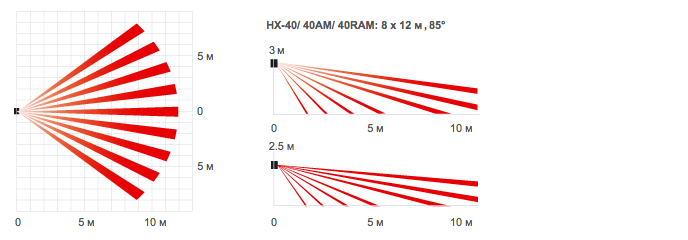 Для извещателя HX-40RAM компанией Optex была специально разработана уникальная оптическая система из двух независимых пироэлементов, которые образуют область детекции высокой плотности, состоящую из 94 перекрестных зон.