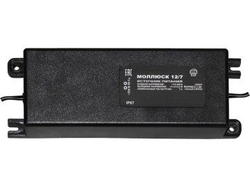 Источник питания Моллюск-12/7 для скрытой установки в кабельные каналы, электротехнические распаечные (соединительные) коробки, кожух видеокамеры. Предназначен для питания радиоэлектронных устройств широкого применения напряжением 12В постоянного тока от сети переменного тока напряжением 220В. Защищен от перегрузки и короткого замыкания на выходе, работоспособен на холостом ходу. Корпус позволяет установку в любом месте, даже под штукатурку. Класс защиты IP67.