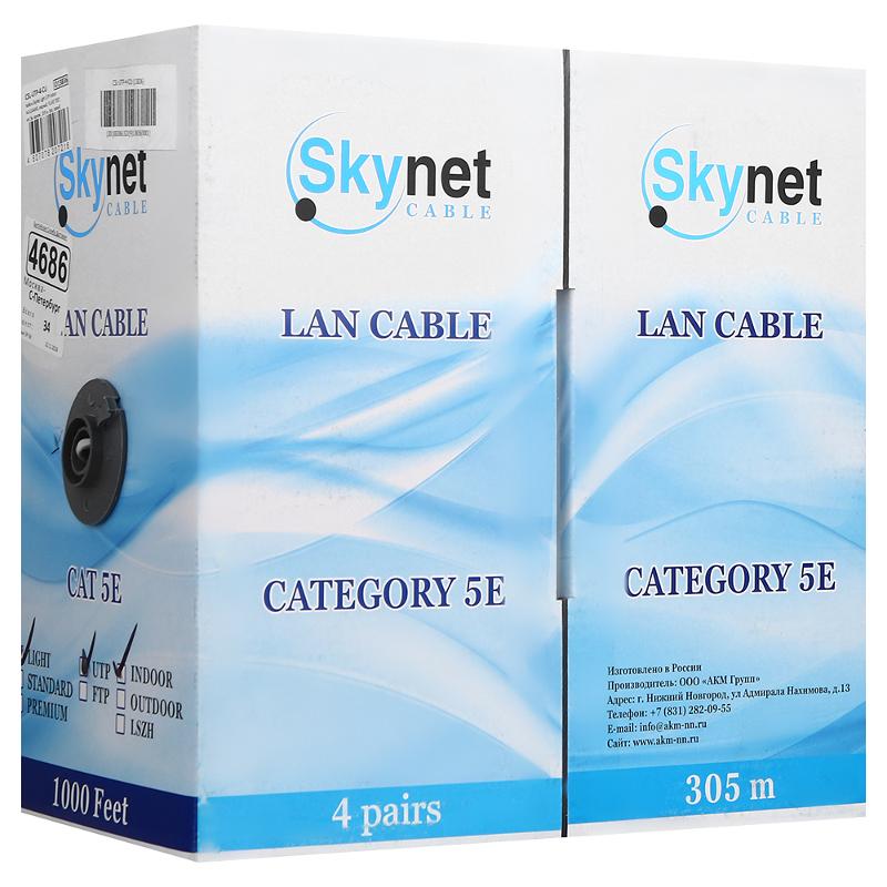 Кабель неэкранированный UTP indoor 4x2x24AWG (LAN) для внутренней прокладки.