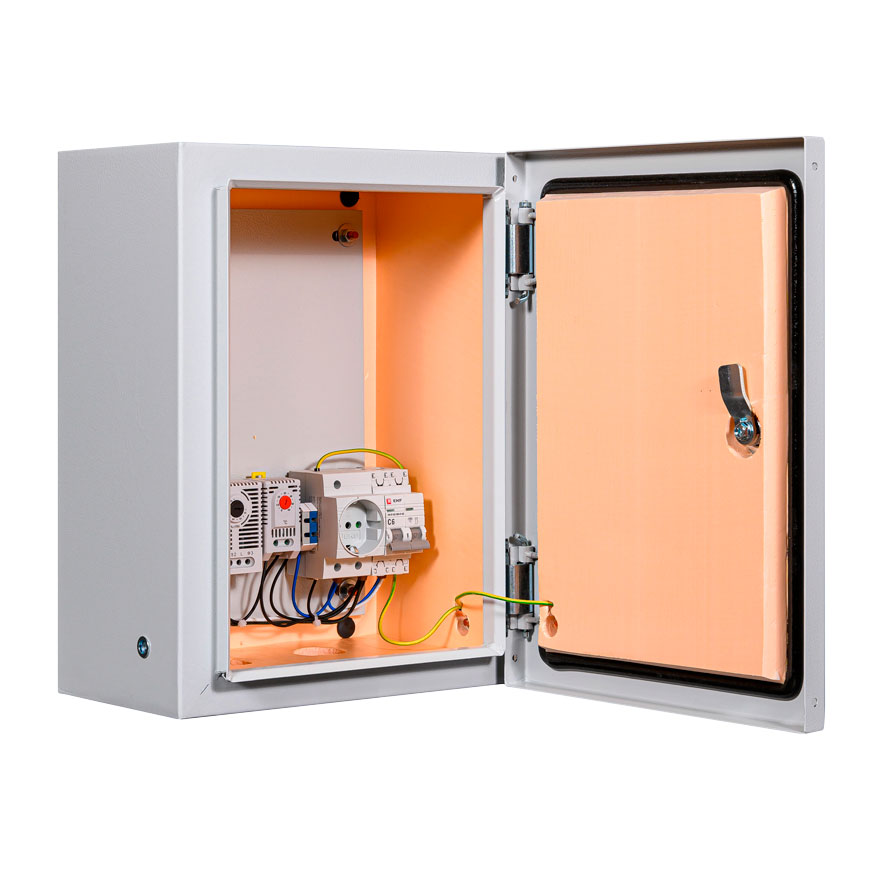 Монтажная плата с DIN-рейкой, розетка, автоматический выключатель. Обеспечивают удобство монтажа и подключения оборудования.