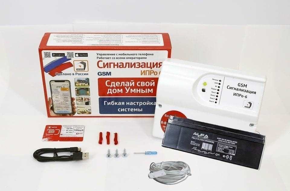 Комплект GSM сигнализации ИПРо-6 отопление предназначен для обеспечения безопасности и управления электроустройствами с телефона при помощи проводных и беспроводных датчиков.