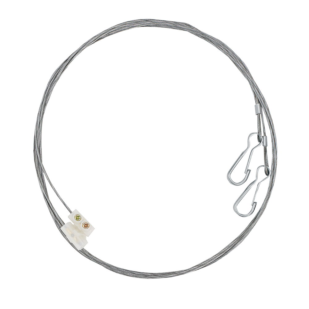 Для крепления световых табло к высоким потолкам (трос 1м, карабин, зажим, клеммная колодка, зип лок)
