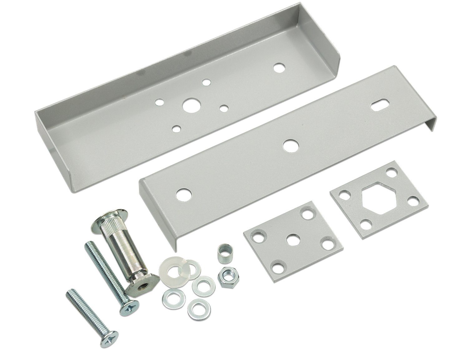 Комплект смещения якоря предназначен для крепления якоря замка ALM-350FB на двери. Комплект позволяет осуществить регулируемую установку якоря замка на расстоянии от 8 до 34 мм от полотна двери. Крепление якоря возможно, как с помощью втулки резьбовой, при этом креплении сверлится сквозное отверстие в полотне двери, так и без сверления сквозного отверстия в полотне двери, при этом применяются фиксатор и упор. |