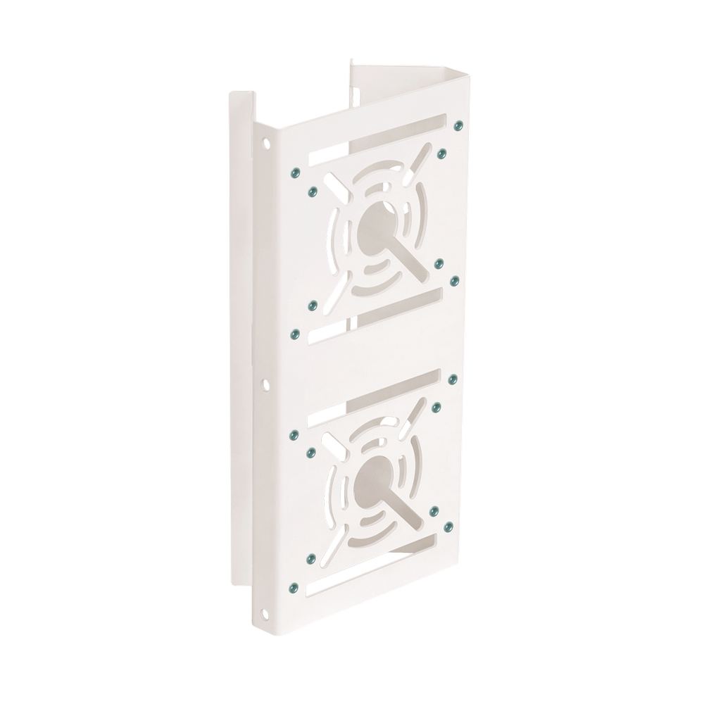 Кронштейн универсальный предназначен для крепления на столб с диаметром не менее 76 мм камер видеонаблюдения и монтажных коробок. Двойной. Изготовлен из оцинкованной стали, покрыт белой краской, не подвержен коррозии. Для удобства установки имеет резьбовые клепки, согласованные под монтаж коробок GF-JB