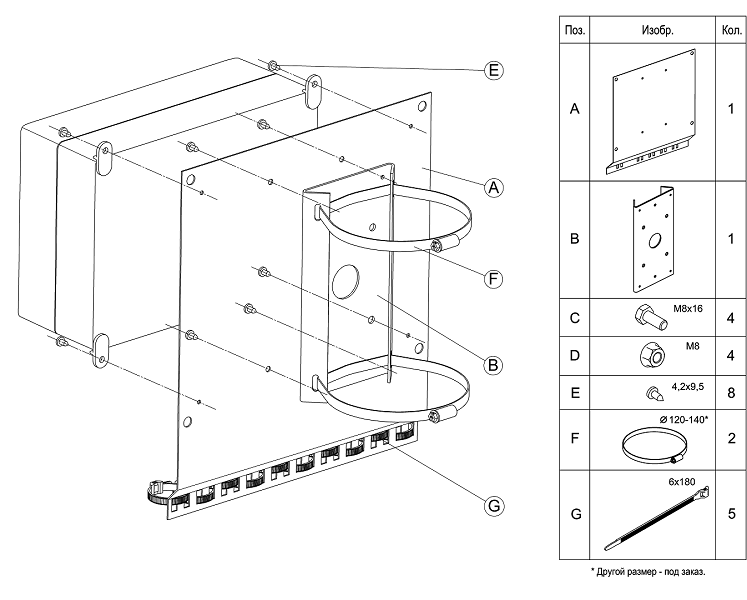 Кронштейн KC-5 предназначен для крепления блока питания БПУ-3-220VAC-24VAC/10А на на круглую опору Ø 115-135мм и крепления (фиксации) подводящих кабелей или металлорукавов.