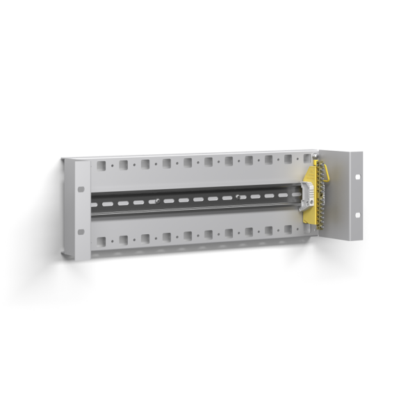 Кронштейн для размещения устройств, предназначенных для установки на DIN-рейку (например, УЗИПы, автоматы, блоки питания и т.д.) в 19-дюймовую стойку.