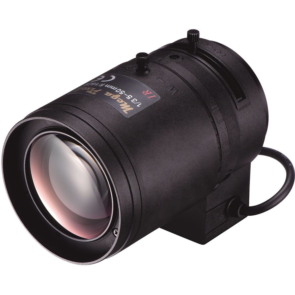 Предназначен для работы с камерами, имеющими матрицу 1/3". Объектив позволяет выбрать фокусное расстояние в диапазоне от 5 до 50 мм. Угол поля зрения (по горизонтали/по вертикали) для 1/3": широкоугольная съемка 53°х40°, телефотосъемка 5.6°х4.2°. Угол поля зрения 1/4": широкоугольная съемка 40°х30°; телефотосъемка 4.2°х3.2°. Модель поддерживает автоматическую регулировку диафрагмы системой P-Iris. Диапазон изменения диафрагмы объектива F1.6-Т360. Диапазон фокусировки 0.3 м. Большой угол вращения для более удобной фокусировки. Исключительно надежная автоматическая лепестковая диафрагма. Крепление с резьбой стандарта CS. Улучшенная технология компенсации хроматических аберраций, высокое качество изображения в ближнем ИК-диапазоне и разрешение по краям кадра. Четкая передача изображения в темное время суток. Запатентованное многослойное покрытие Tamron эффективно уменьшает блики и ореолы.