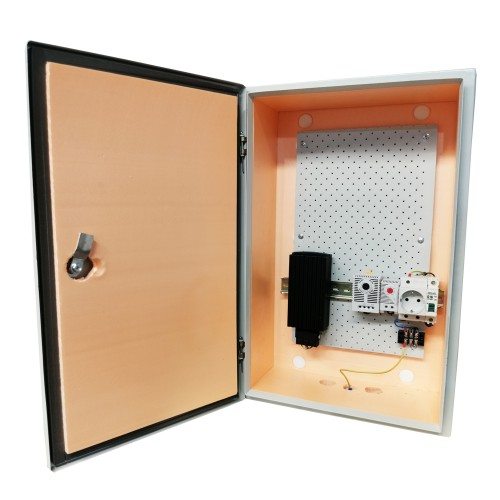 Климатический термошкаф Мастер 3 УТ-Г предназначен для установки электрооборудования, которому необходима защита от неблагоприятных условий окружающей среды (класс защиты IP66) и поддержания заданного температурного режима при эксплуатации этого оборудования. Бюджетное, простое и качественное решение для безопасного использования любого электрооборудования в сложных климатических условиях от -50 до +50 градусов. Шкаф оснащен механическим гидростатом с термореле, контролирующий влажность внутри устройства. Для утепления шкафа используется пенополистерол, толщиной 20 мм, нагреватель, номинальной мощностью в 75 ВТ, позволяет поддерживать безопасную температуру внутри шкафа.