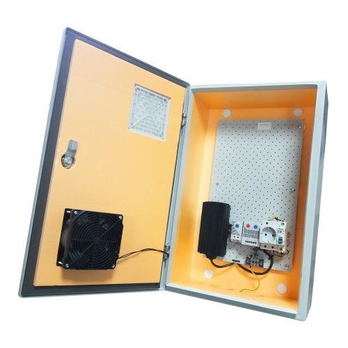 Климатический термошкаф МАСТЕР 3 УТПВ-А с активной вентиляцией - это утепленный шкаф со встроенным блоком управления климатом, вентиляторной системой охлаждения и обогревателем. Блок состоит из нескольких терморелле, при помощи которых осуществляется управление холодным запуском и поддержание заданной температуры. Категория защиты IP66 (ГОСТ 14254-96). Для утепления шкафа используется экструдированный пенополистерол, нагреватель, номинальной мощностью в 75 ВТ, позволяет поддерживать безопасную температуру внутри шкафа, а реле холодного старта позволяет "мягко" запускать оборудование внутри шкафа только после его прогрева. Мощность вентилятора 21 ВТ.